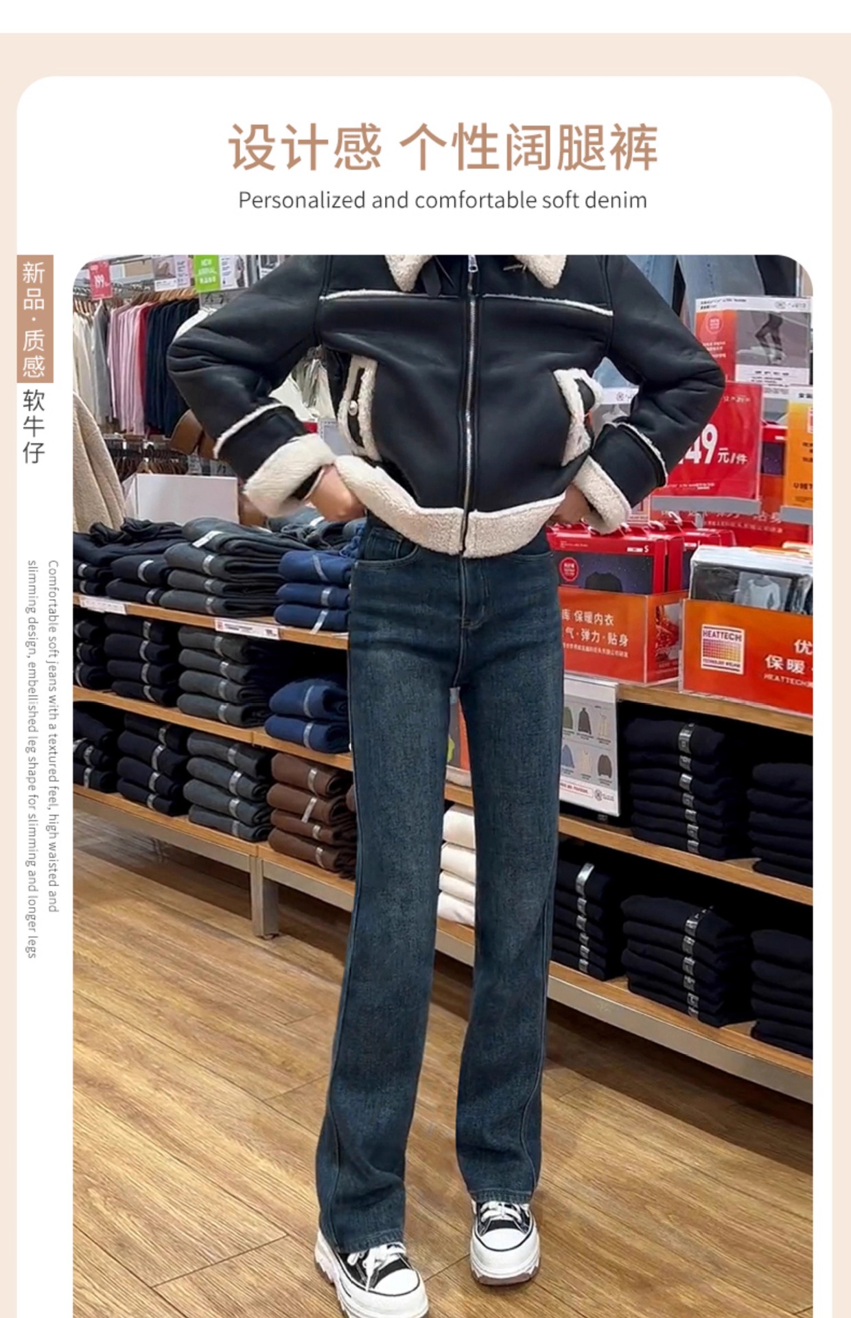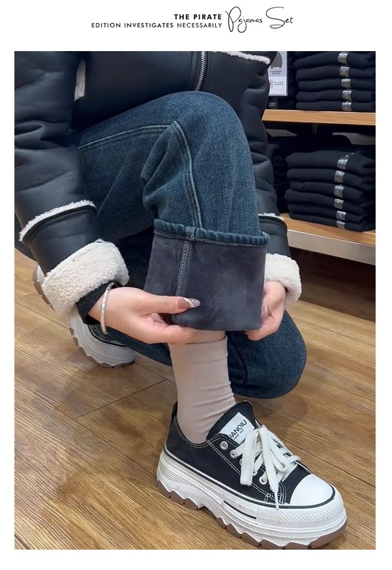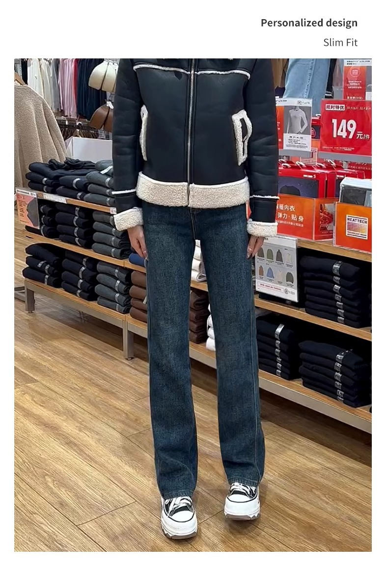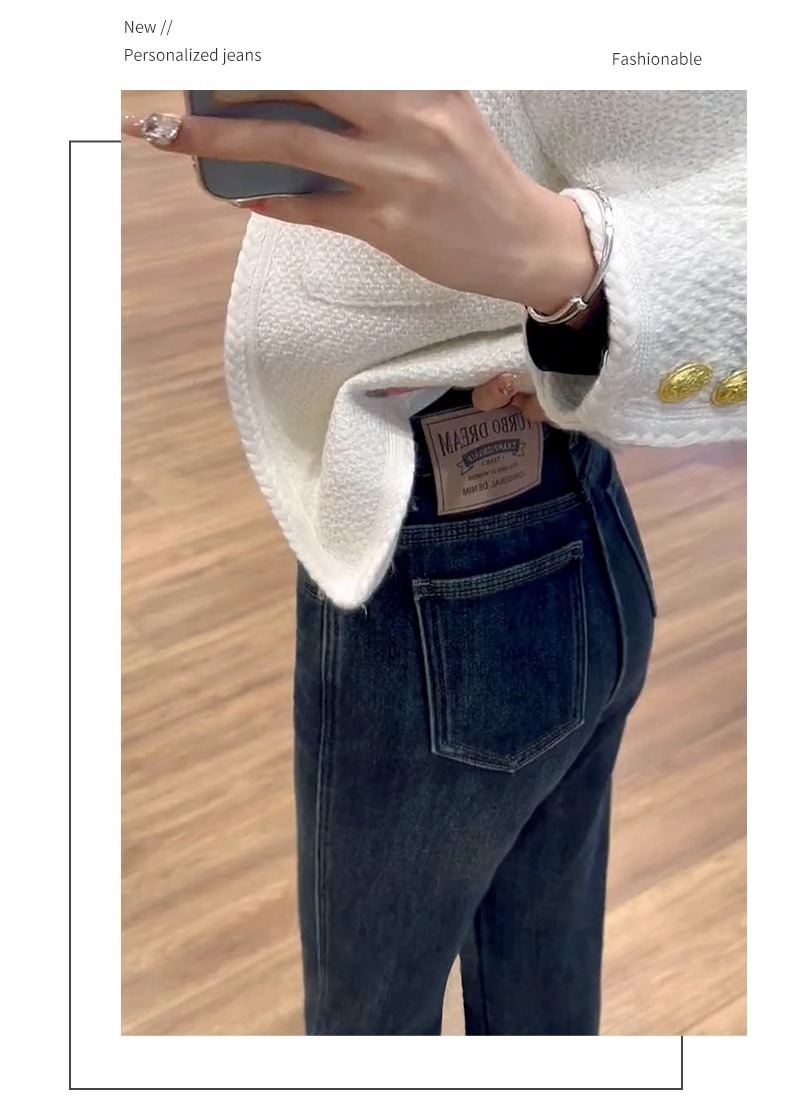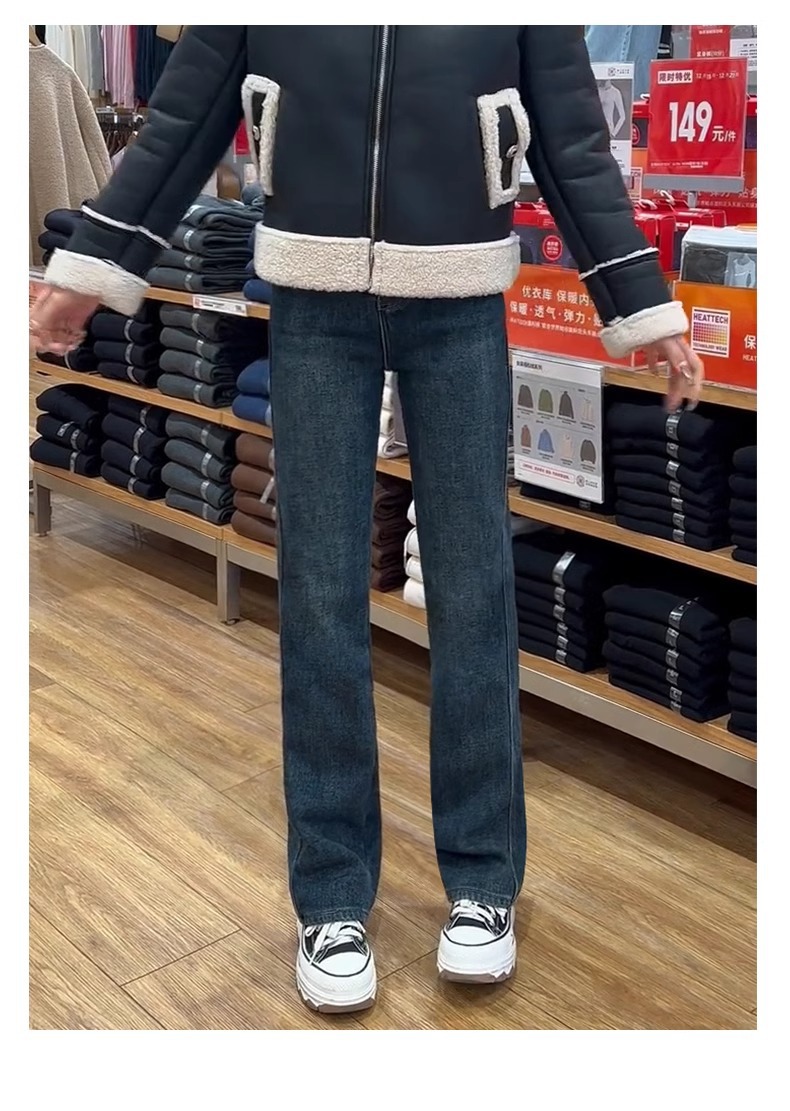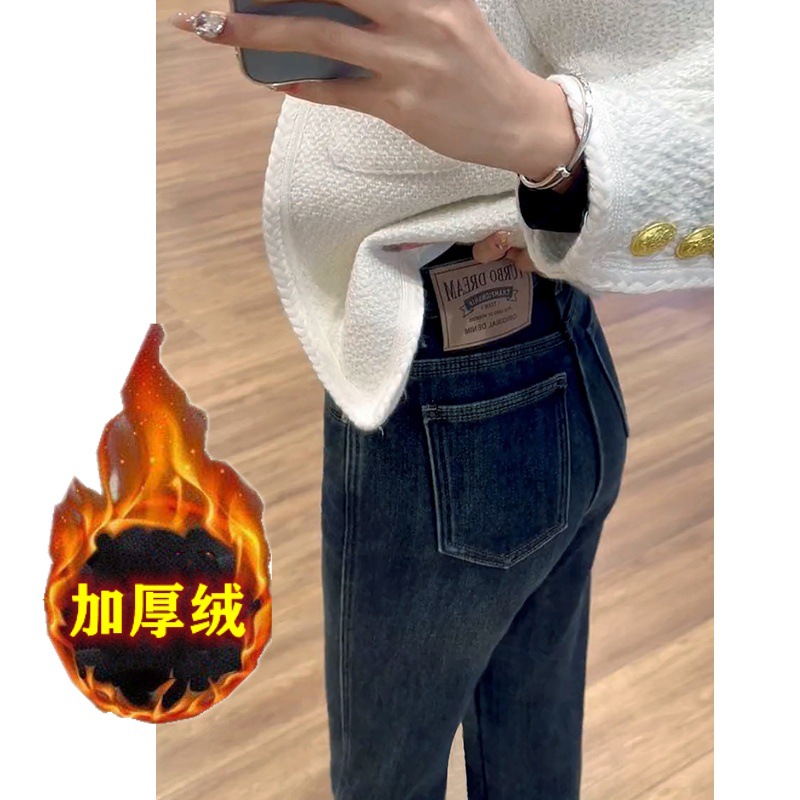 빈티지 스트레이트 레그 청바지 여성의 2024 가을 및 겨울 새로운 작은 폭발 기모 높은 허리 슬리밍 좁은 넓은 다리 바지스토어 가기