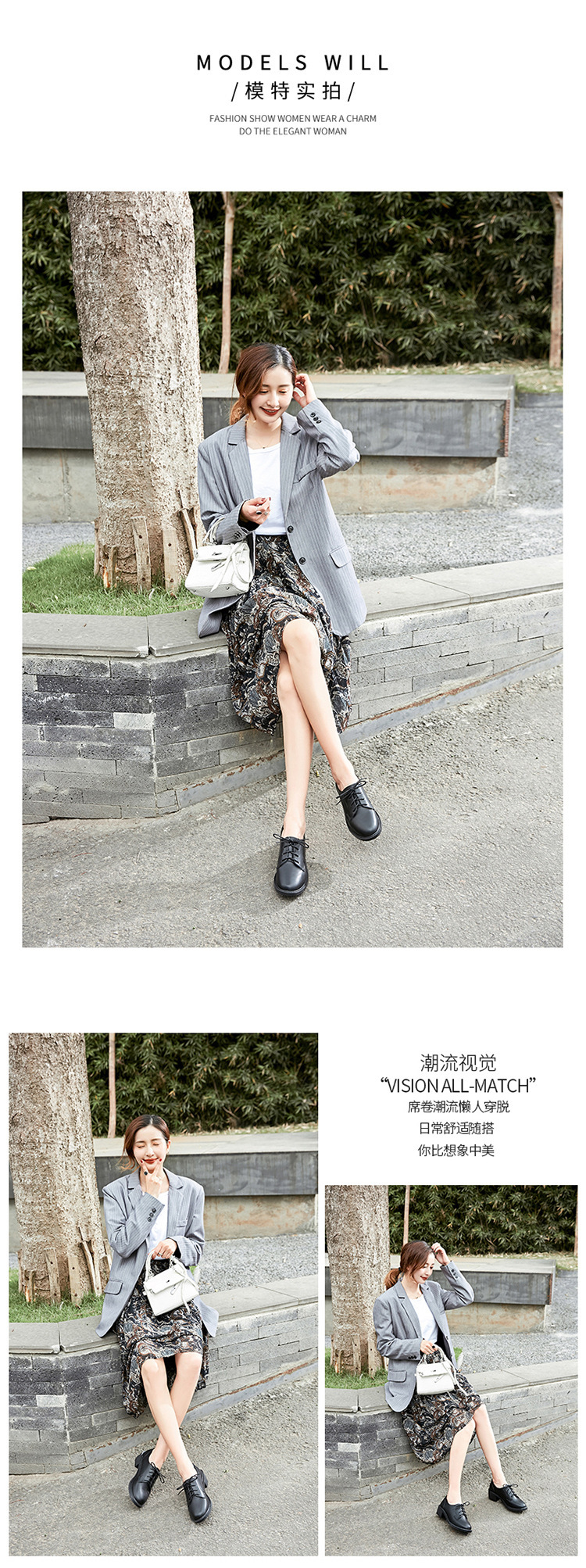 청키 힐 싱글 레이어 신발 여성 영국 스타일 기모 봄 올 매치 로퍼 가죽 신발 여성 중간 힐 작은 가죽 신발 한국 스타일 2024스토어 가기