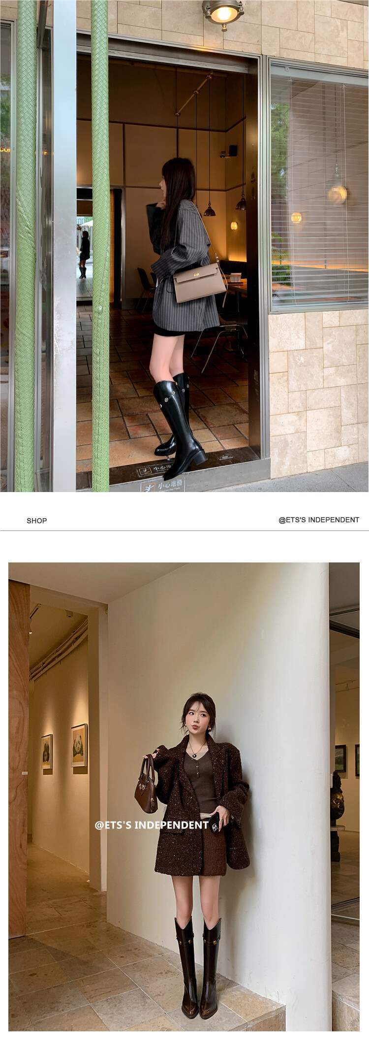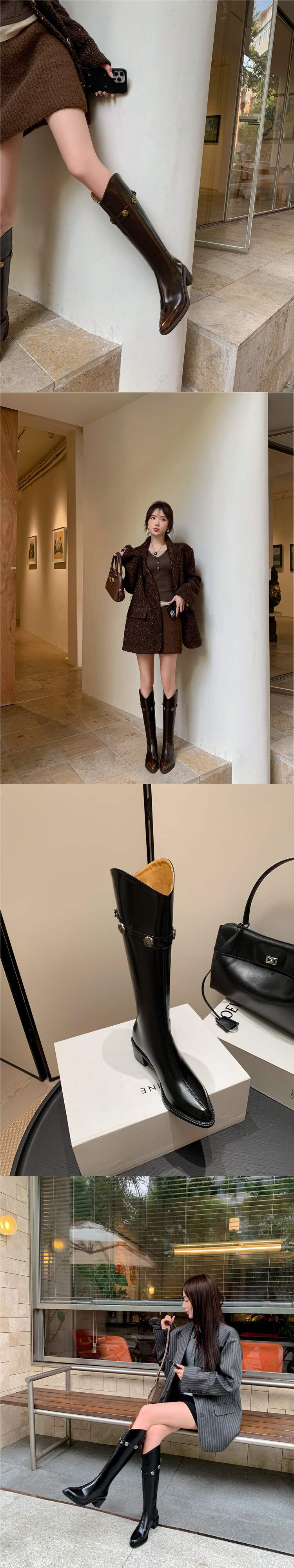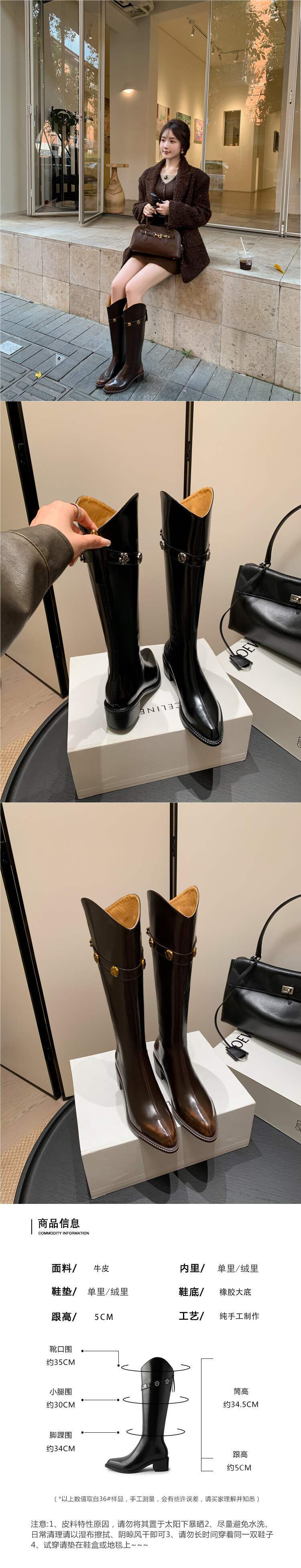 소프트! 여성용 뾰족한 두꺼운 힐 부츠 여성용 무릎 V-무릎 기사 부츠 여성용 가죽 하이힐 부츠 여성용 리벳스토어 가기