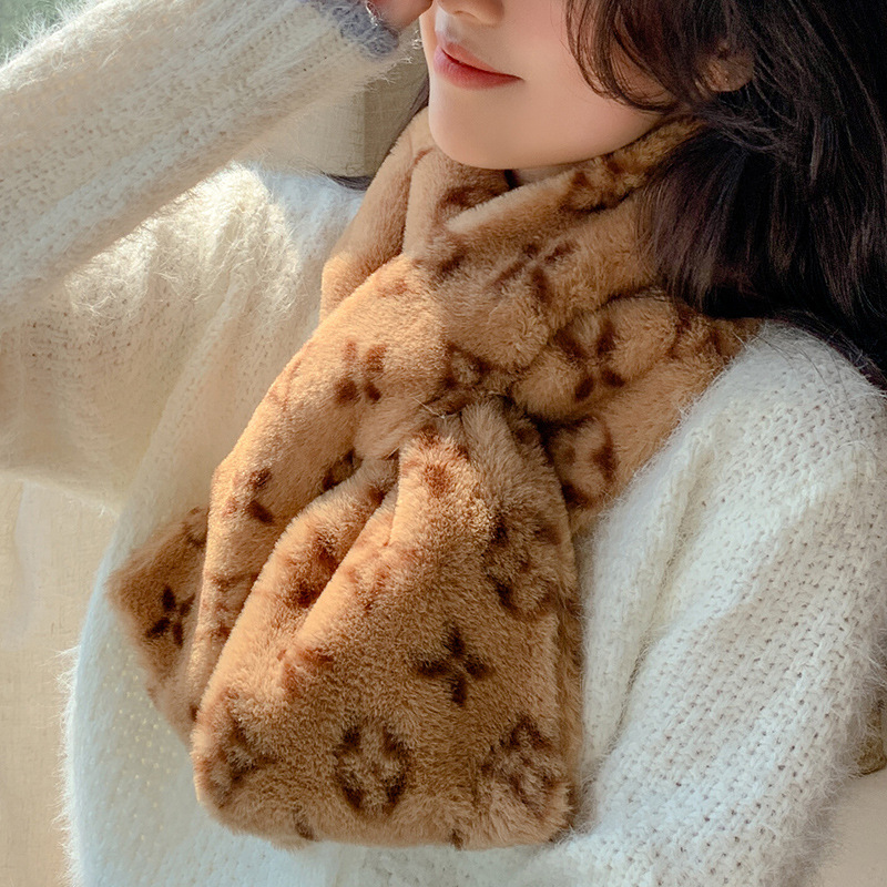 스카프 여자 겨울 부드러운 왁스 따뜻한 귀여운 소녀의 모피 봉제 크로스 스카프 학생 한국식 올매치 하라주쿠 패션