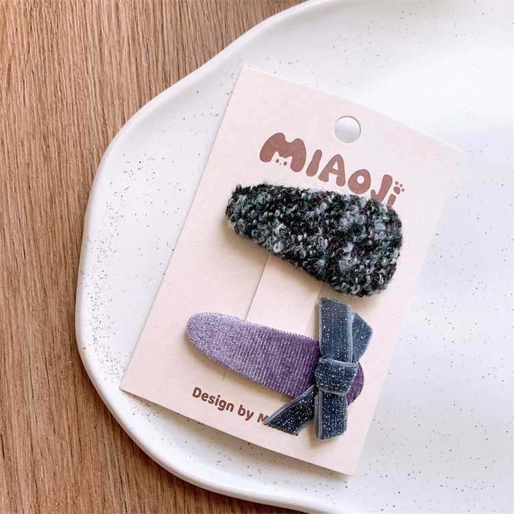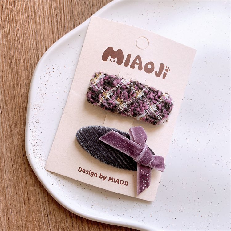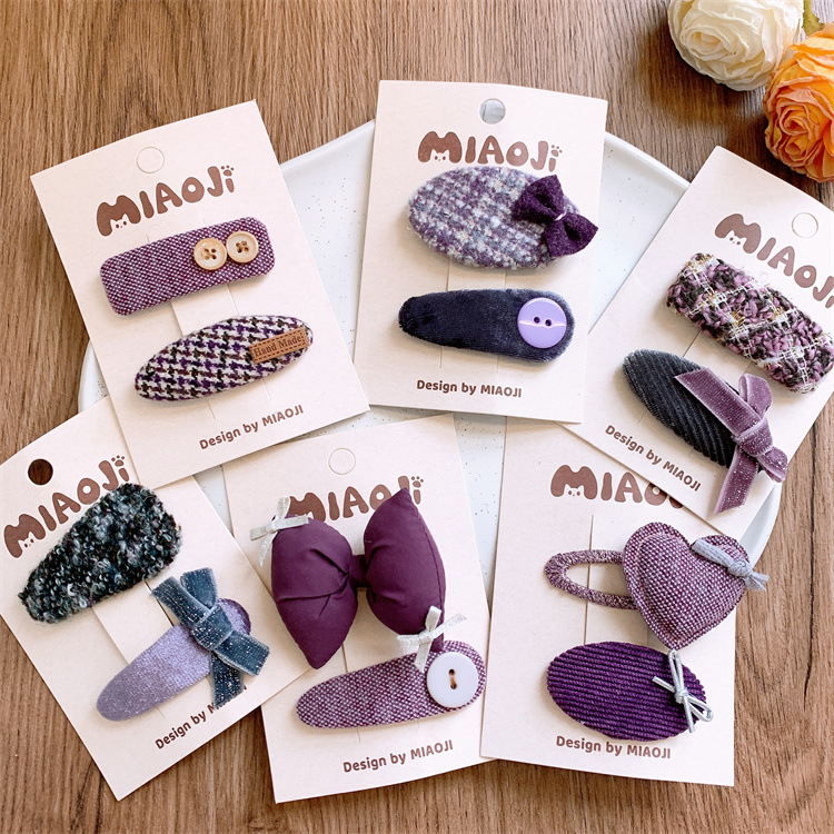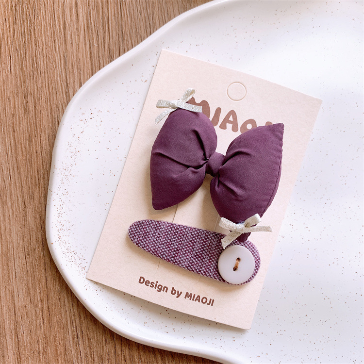 새로운 어린이 보라색 원단 활 헤어핀 달콤한 소녀 격자 무늬 타원형 앞머리 클립 깨진 머리 BB 클립 헤어핀
