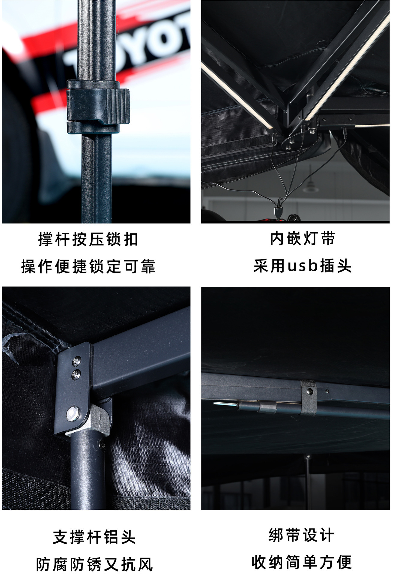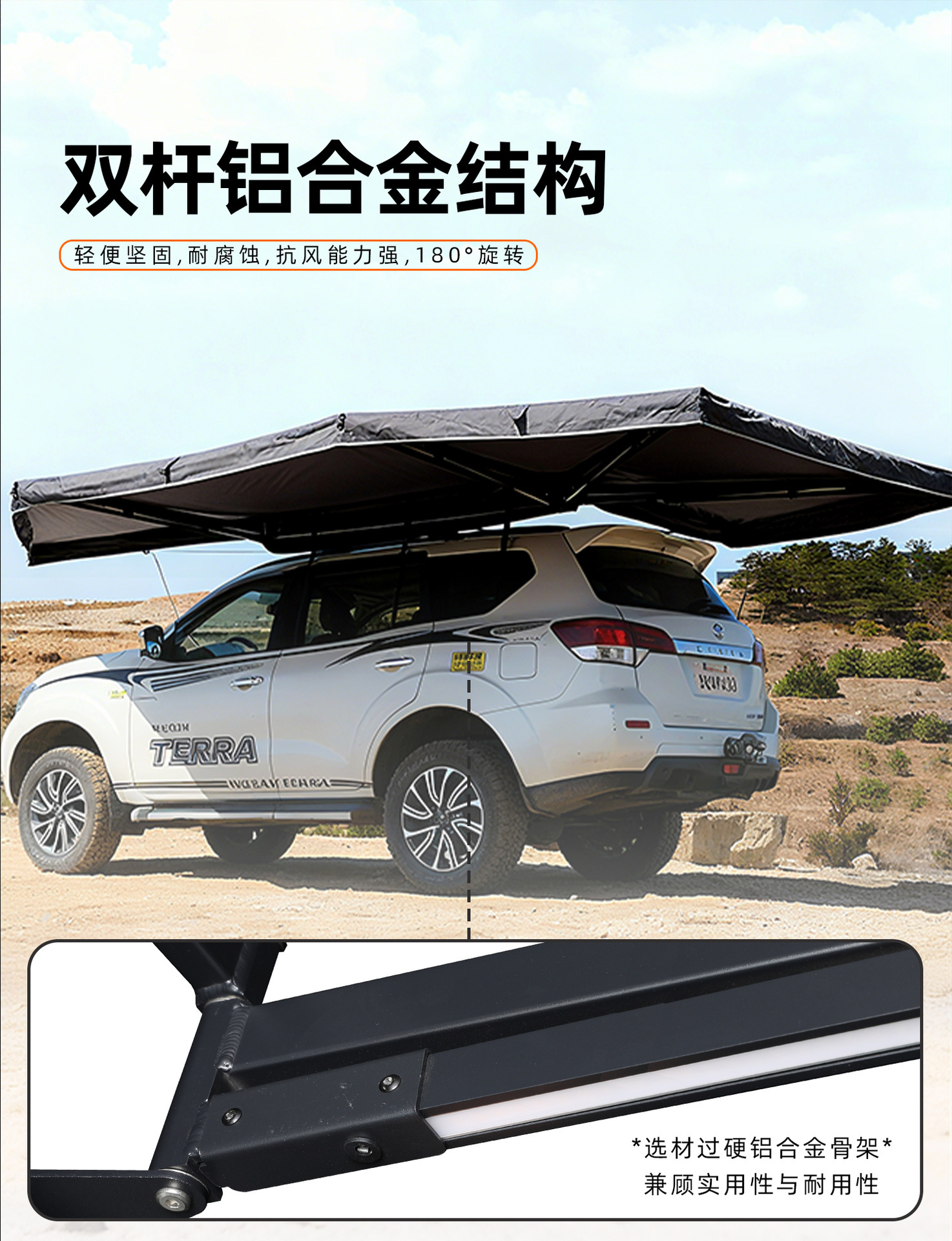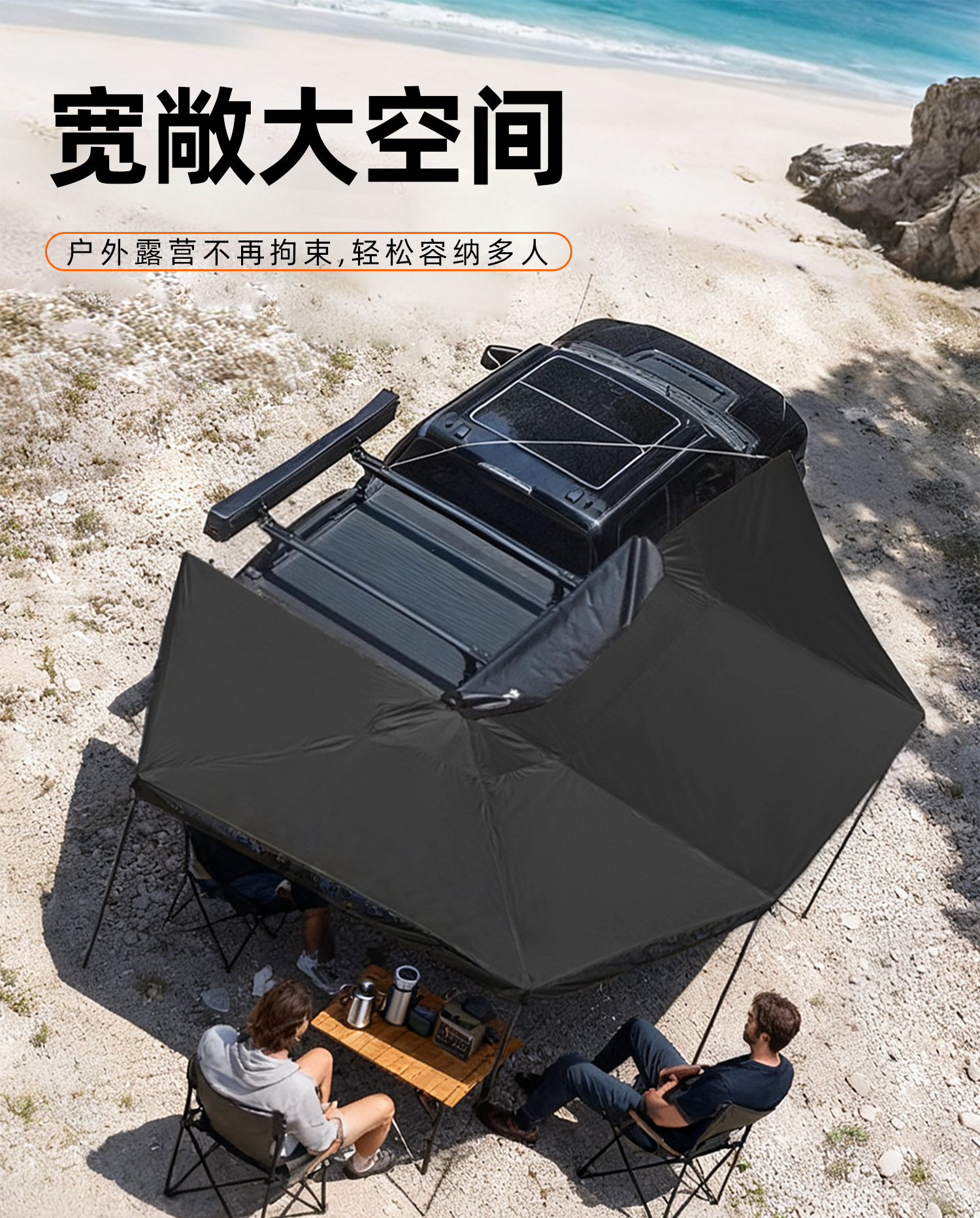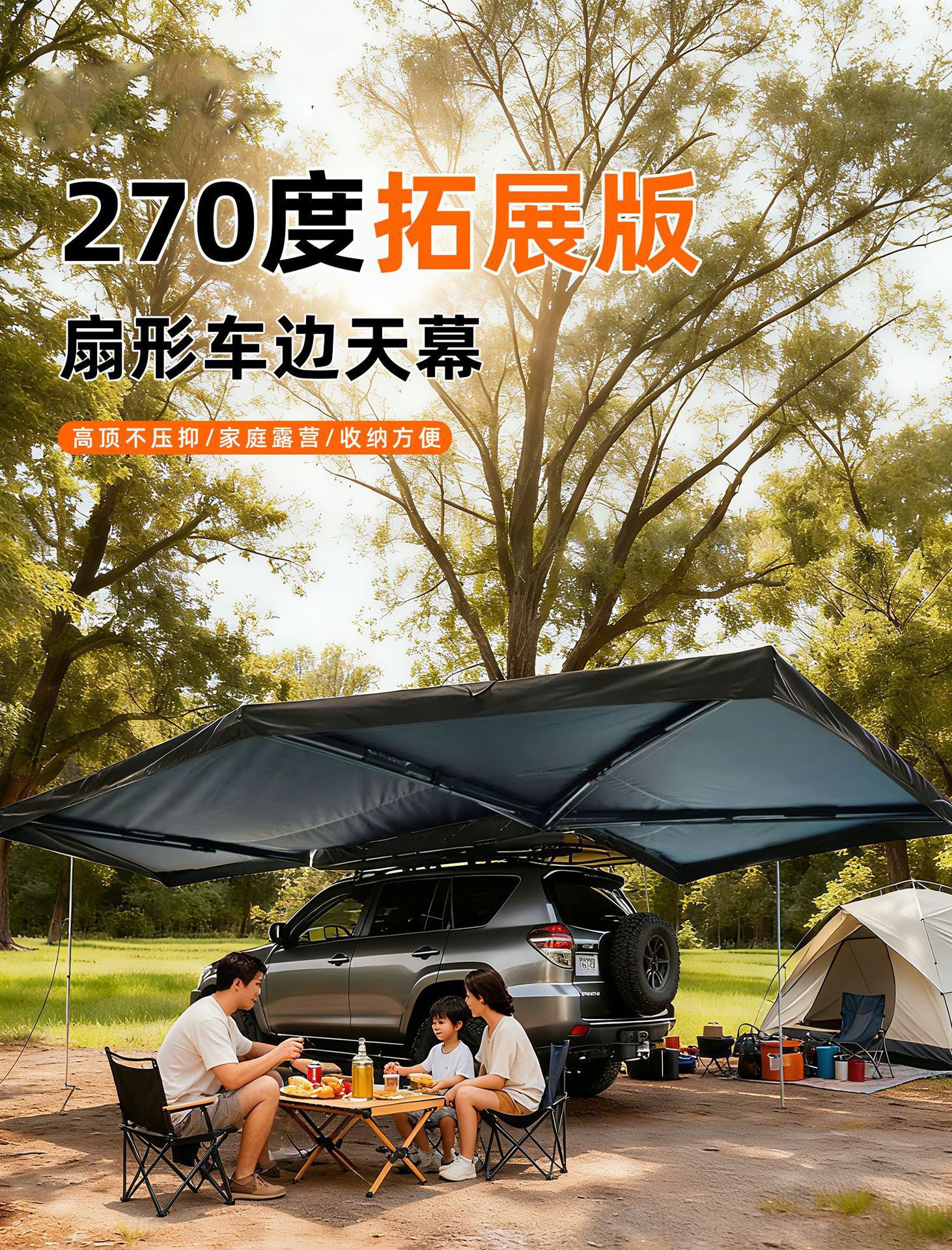 자동차 측면 텐트, 블랙 글로시 자외선 차단 차양막, 두꺼운 천막, 차량용 270도 팬형 텐트