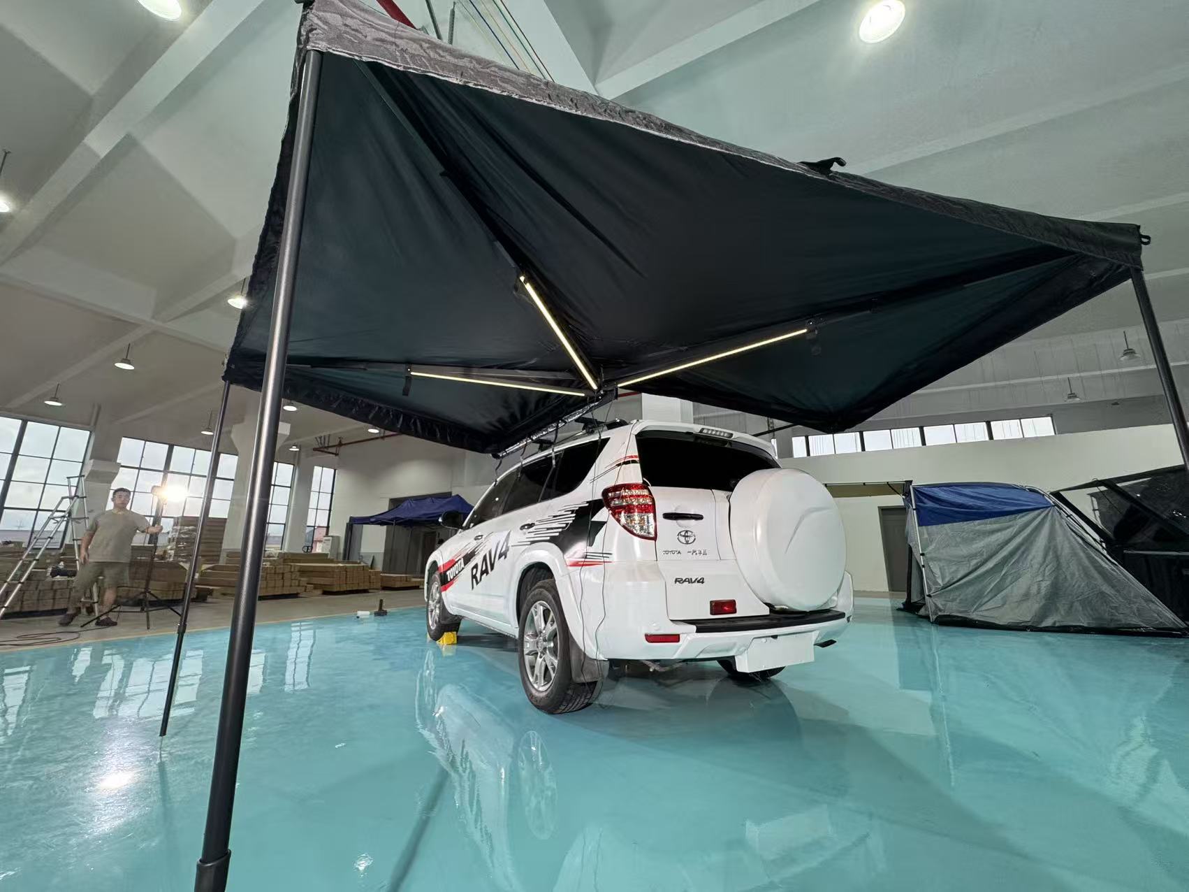 자동차 측면 텐트, 블랙 글로시 자외선 차단 차양막, 두꺼운 천막, 차량용 270도 팬형 텐트스토어 가기