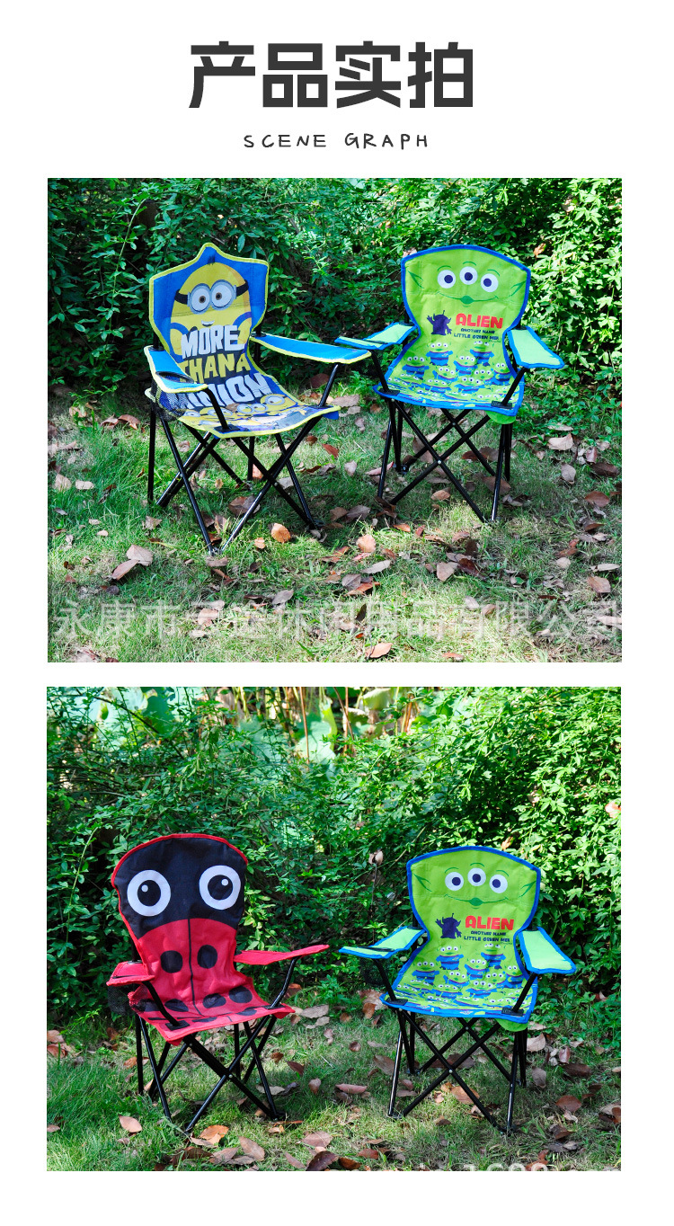 도매 야외 캠핑 휴대용 등받이 어린이 해변 의자 레저 귀여운 만화 유아 접이식 의자스토어 가기