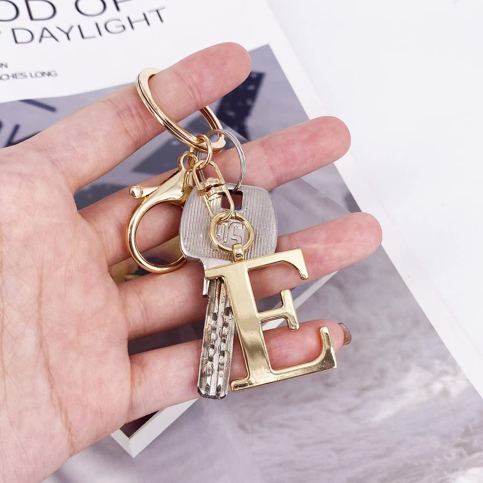 새로운 스테인레스 스틸 26 영어 편지 키 체인 가방 인형 펜던트 자본 편지 커플 이름 펜던트스토어 가기
