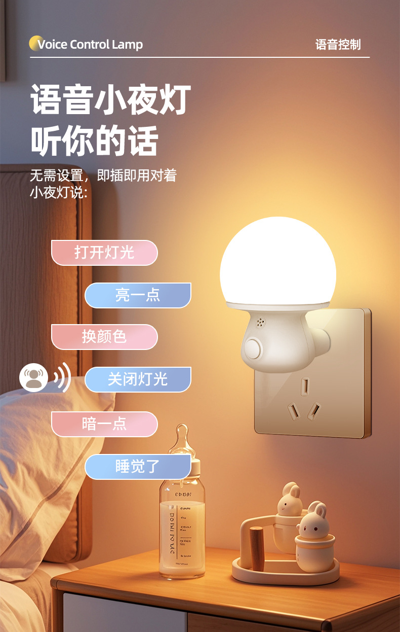 코리 높은 밝기 지능형 음성 음성 제어 유도 야간 조명 3 색 디밍 독립 스위치 침실 수면 공급