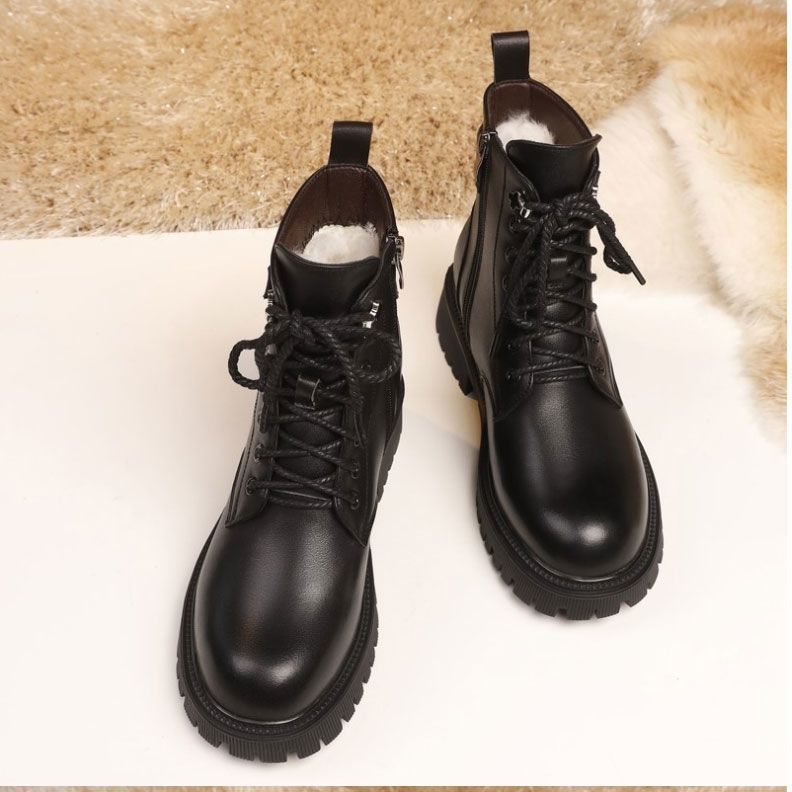 재고 두꺼운 밑창 마틴 부츠 편안한 발목 부츠 영국 스타일 패션 가죽 부츠 2024 가을 및 겨울 새로운 기모 여성용 부츠스토어 가기