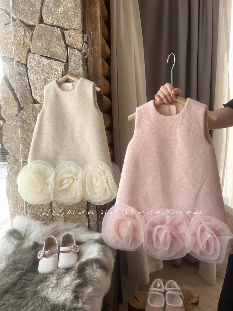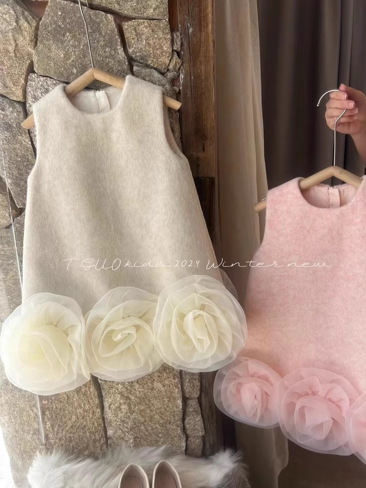 통싱위안 소녀 향기로운 스타일 원피스 새로운 어린이 가을 겨울 여성의 보물 생일 원피스 꽃 조끼 원피스스토어 가기