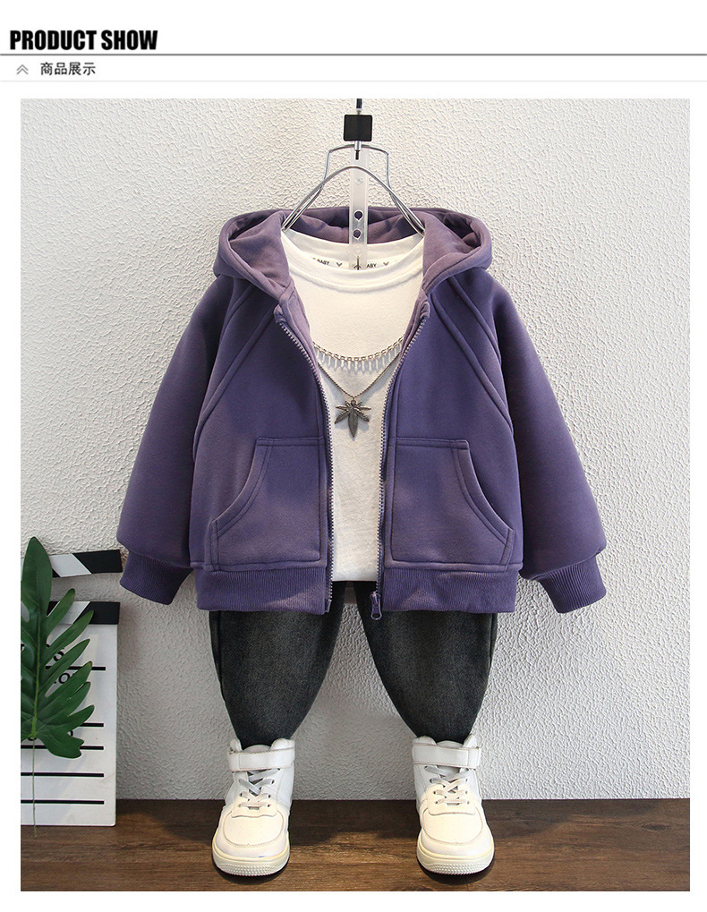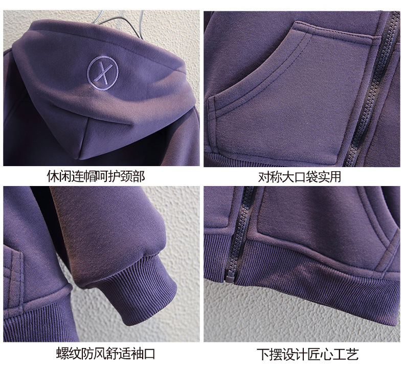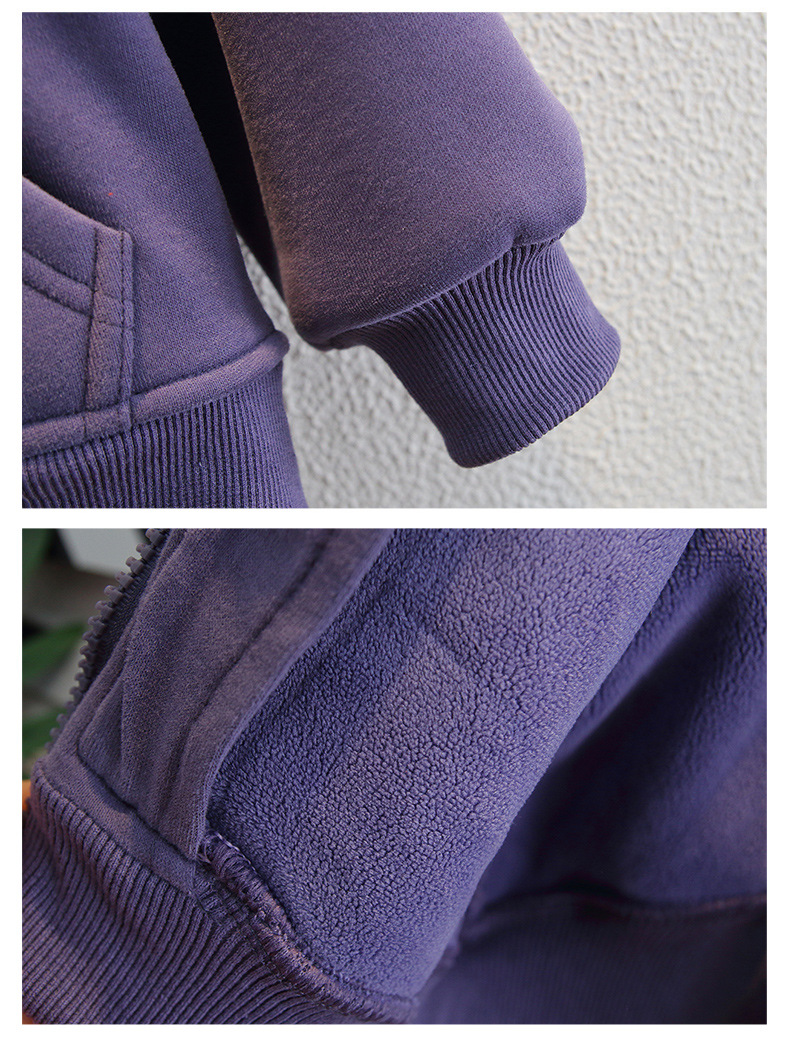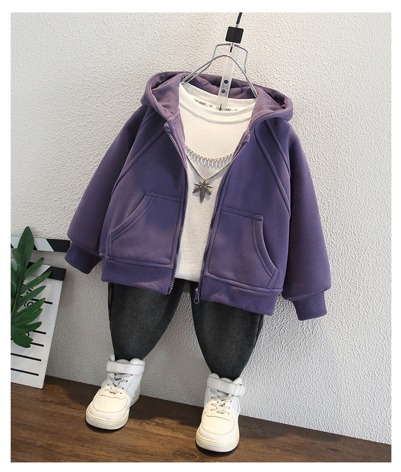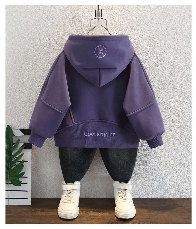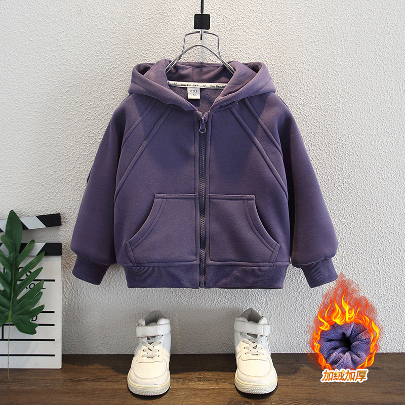 소년 2025 새로운 운동복 재킷 스트리트 패션 겨울 어린이 벨벳 보라색 카디건 아기 후드 아동 의류스토어 가기