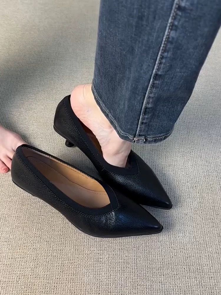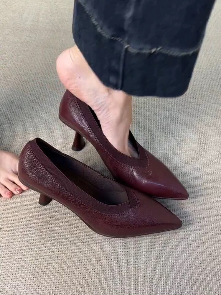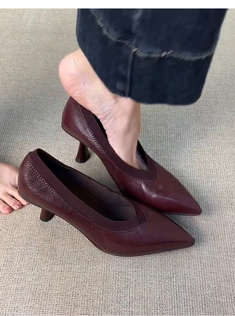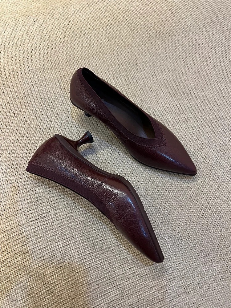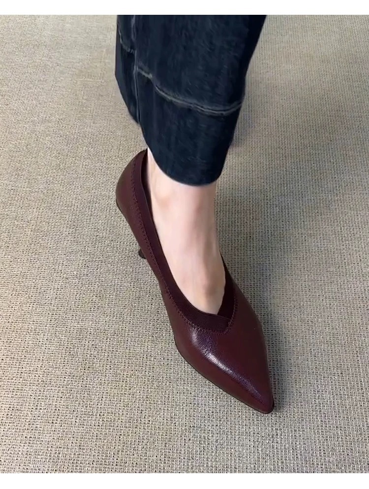 2024 늦은 가을 새로운 프랑스 레트로 V-입 스틸레토 힐 슈즈 포인팅 우아한 슬립 온 프로 올 매치 하이힐 슈즈