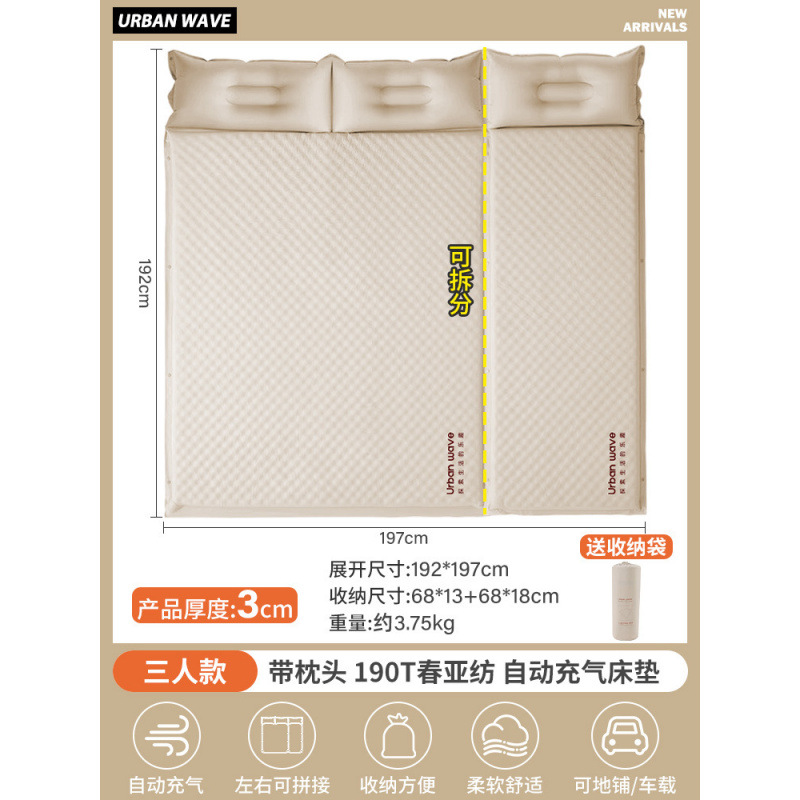 • [두께 3cm로 업그레이드] 3인용 모델 [자동 급속 팽창/접합 가능] 보관 가방 포함