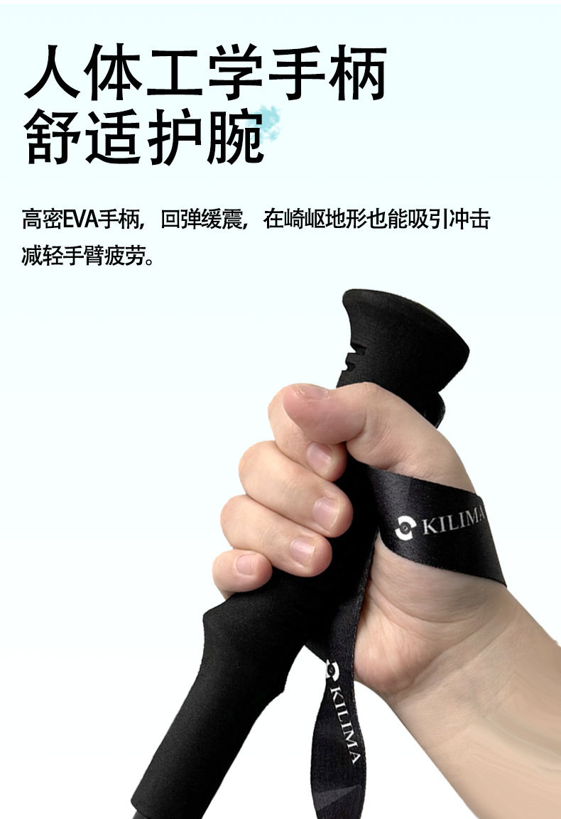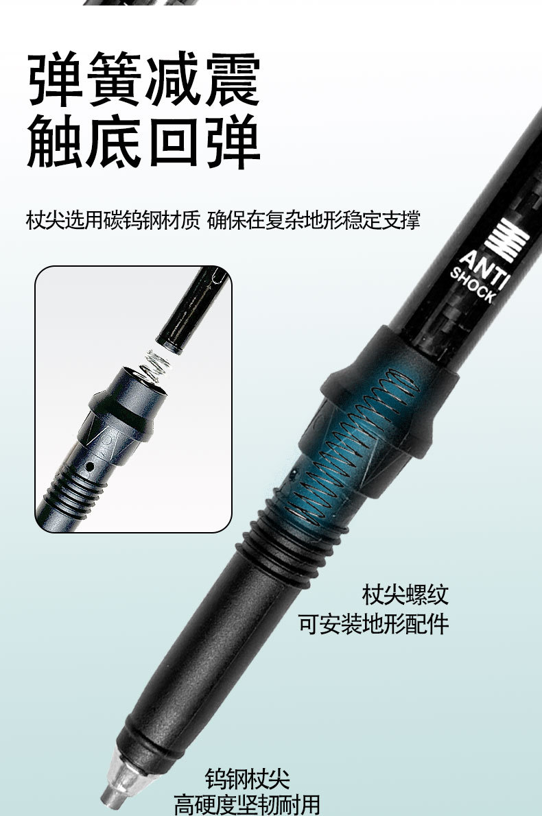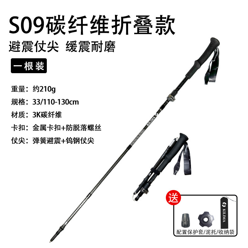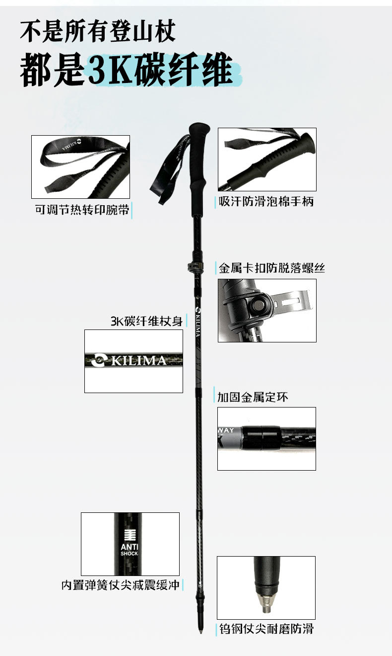 킬리 마 탄소 섬유 접이식 충격 흡수 금속 외부 잠금 충격 흡수 강한 내마모성 경량 스프링 팁 등산 스틱