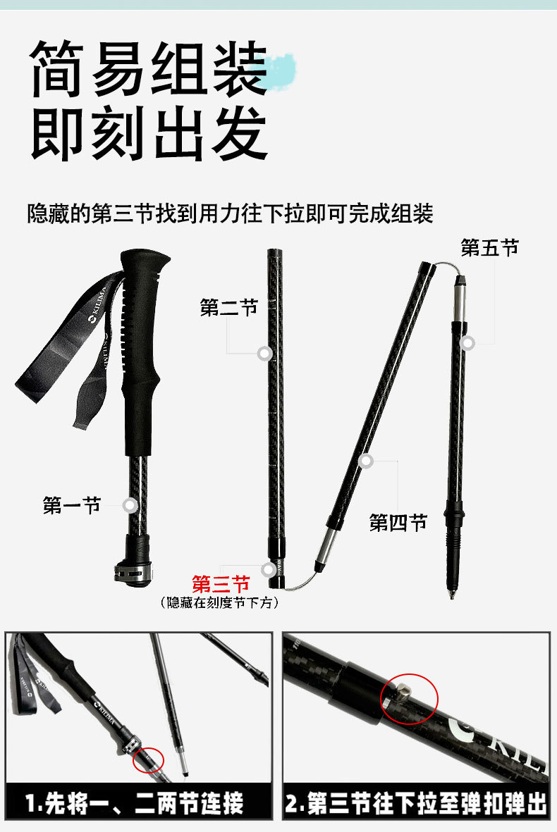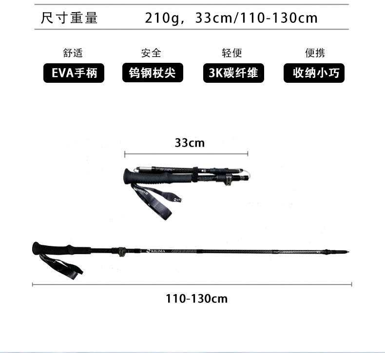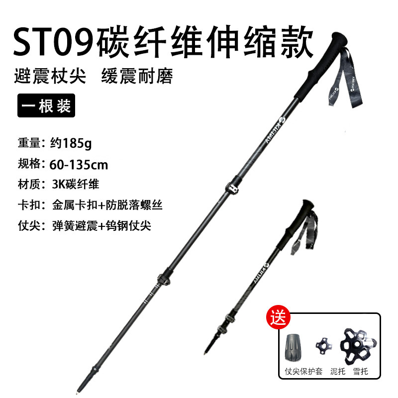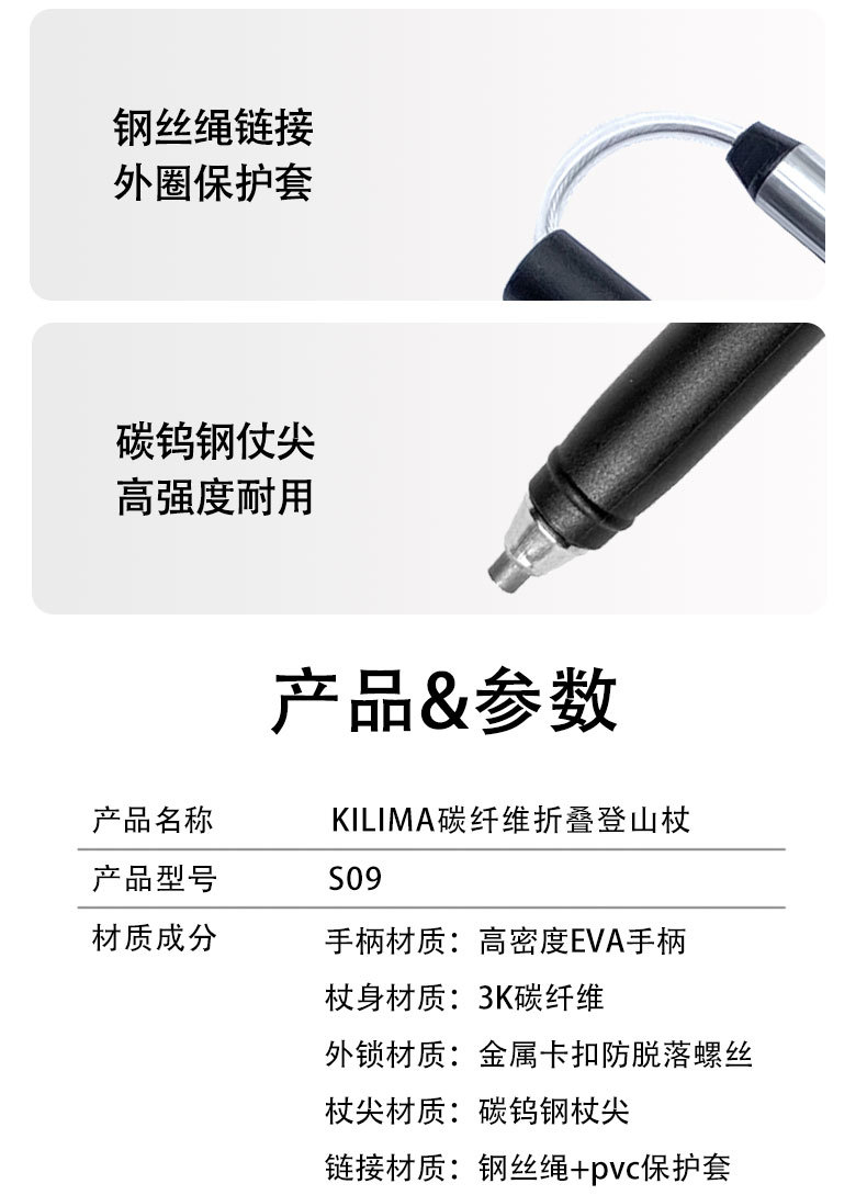 킬리 마 탄소 섬유 접이식 충격 흡수 금속 외부 잠금 충격 흡수 강한 내마모성 경량 스프링 팁 등산 스틱