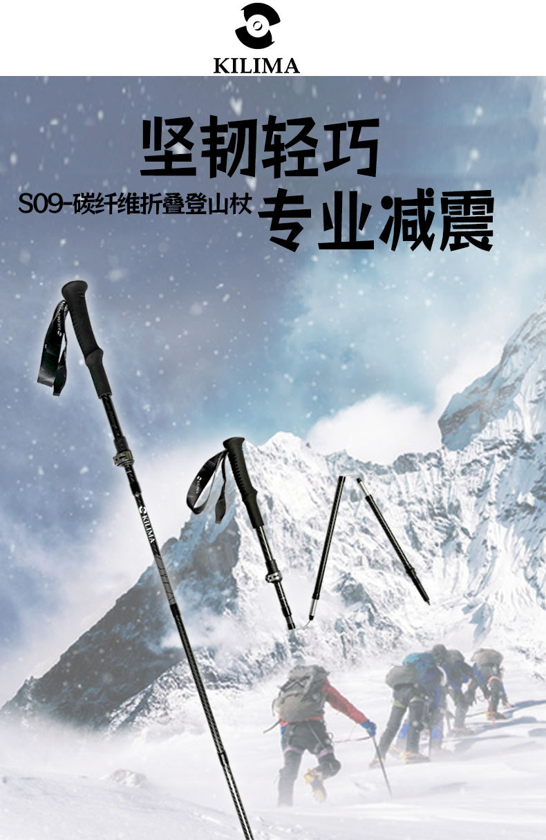 킬리 마 탄소 섬유 접이식 충격 흡수 금속 외부 잠금 충격 흡수 강한 내마모성 경량 스프링 팁 등산 스틱스토어 가기