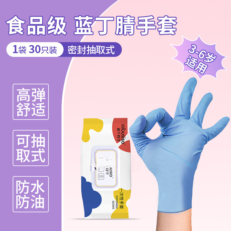• [7~12세 중년 아동 모델] 개별 포장되지 않은 파란색 니트릴 식품 등급 S 사이즈 30개
