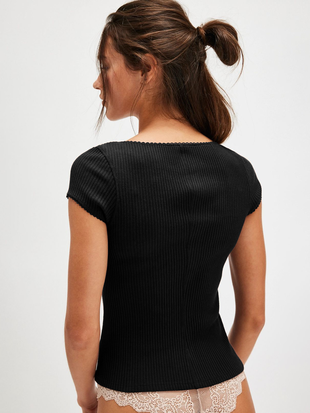 유럽과 미국 스타일 2025 여름 새로운 섹시한 뜨거운 소녀 버튼 짧은 소매 스레드 카디건 최고 패션 단색 티셔츠 여성스토어 가기