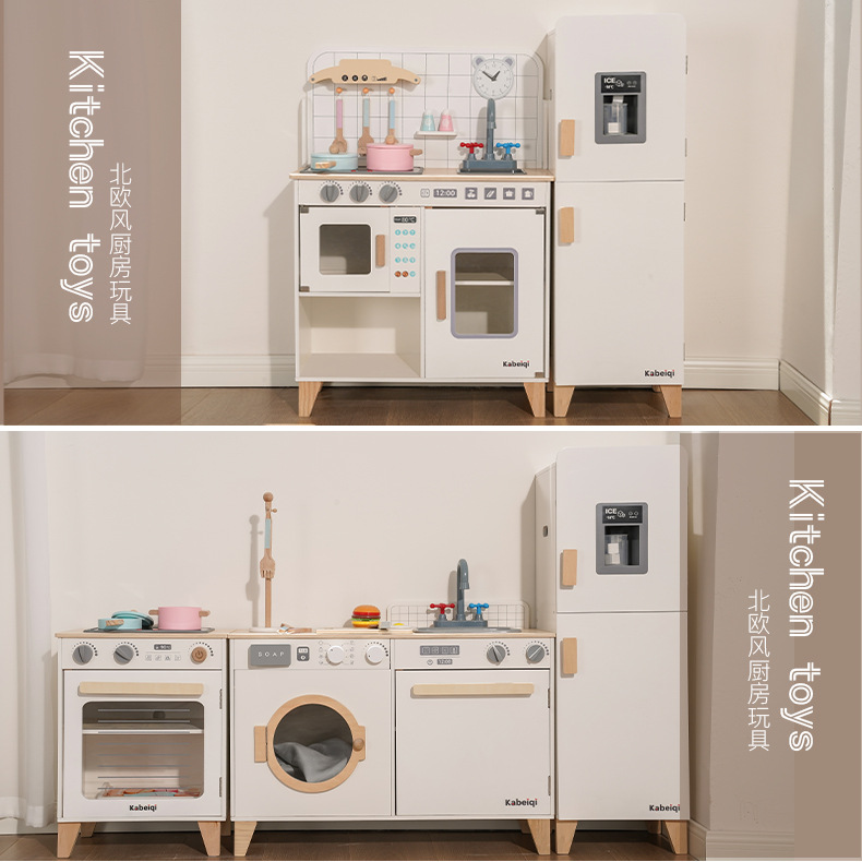 덴마크 어린이 놀이 홈 주방 요리 장난감 시뮬레이션 소리와 가벼운 냉장고 세트 시뮬레이션 요리 인형 집 3 세 6
