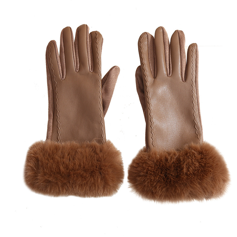 스웨이드 장갑 여성 PU 가죽 바느질 겨울 기모 두꺼운 샤넬 스타일 사이클링 패션 따뜻한 장갑 재고