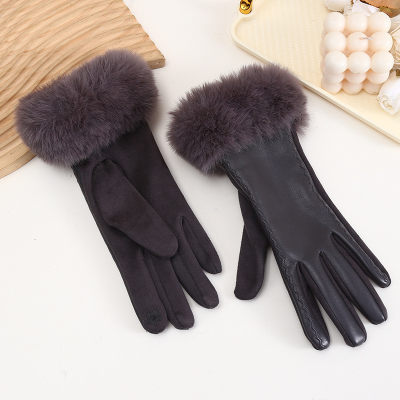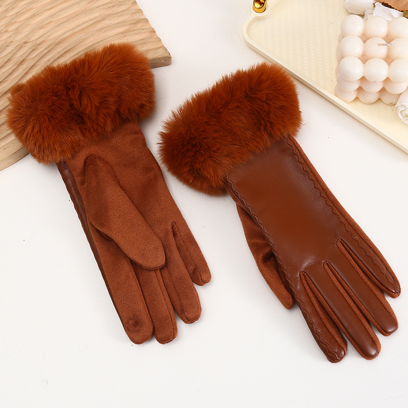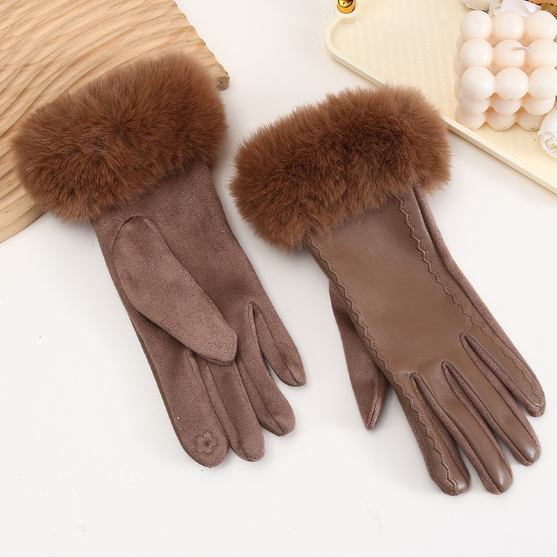 스웨이드 장갑 여성 PU 가죽 바느질 겨울 기모 두꺼운 샤넬 스타일 사이클링 패션 따뜻한 장갑 재고스토어 가기