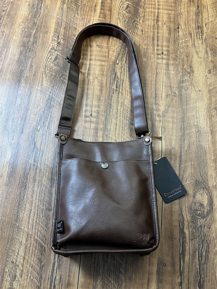Threebox 유행 새로운 남성 수직 어깨 가방 유행 브랜드 올 매치 스퀘어 크로스 바디 가죽 남성 가방스토어 가기