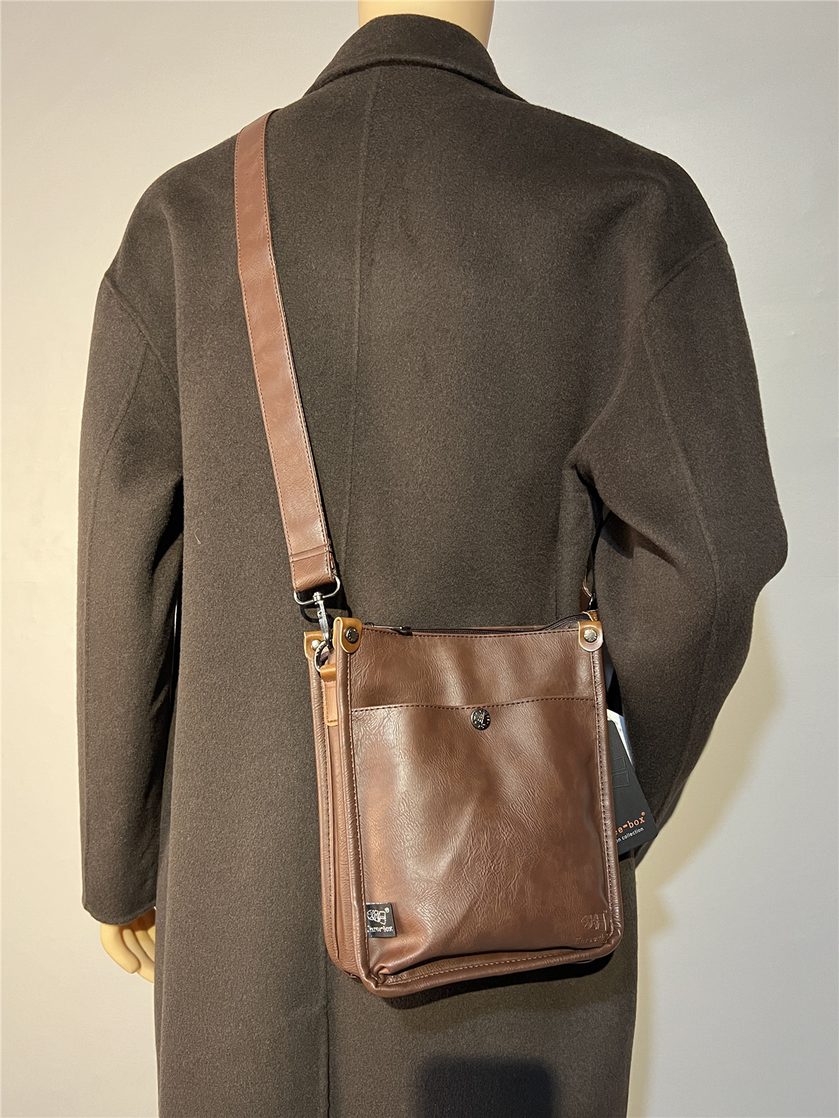 Threebox 유행 새로운 남성 수직 어깨 가방 유행 브랜드 올 매치 스퀘어 크로스 바디 가죽 남성 가방
