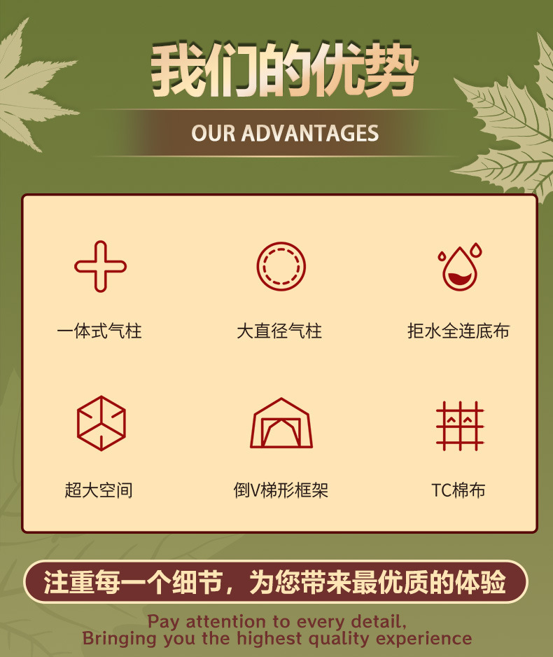 Haoyu 풍선 텐트 녹색 TC 면 8 8 야외 방비 그늘 천 캠핑 풍선 텐트 배치
