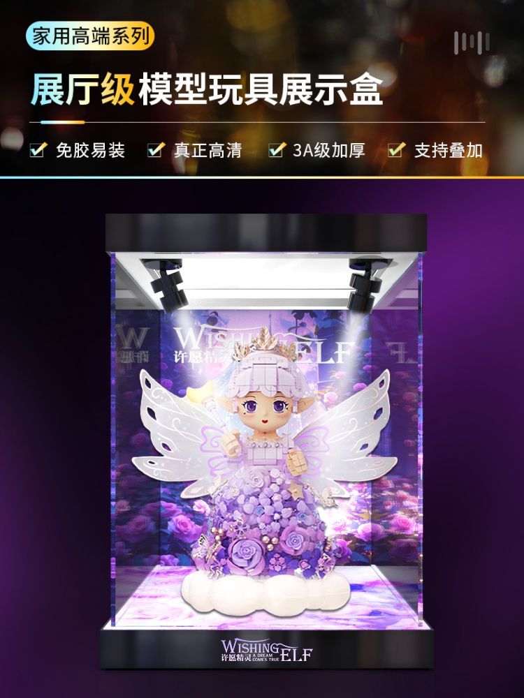 엘프 천사 손 밤 빛 빌딩 블록 모델 HD 저장 상자 소원을위한 아크릴 먼지 커버
