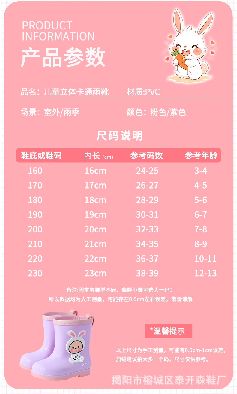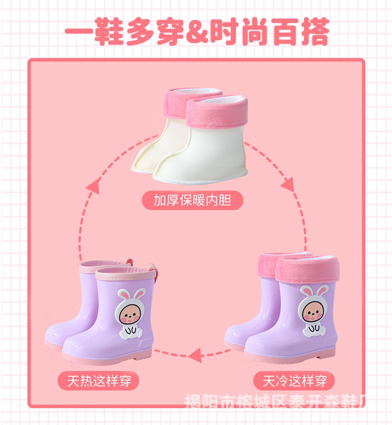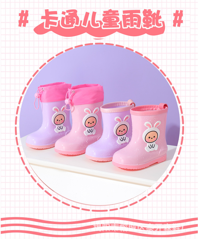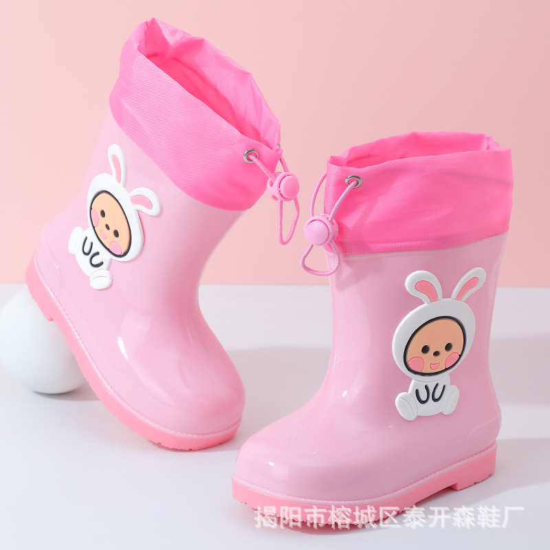소녀 토끼 비 부츠 어린이 장화 만화 아기 물 신발 귀여운 어린이 방수 워터 부츠 미끄럼 방지 따뜻한