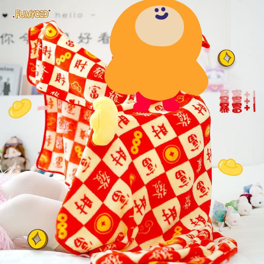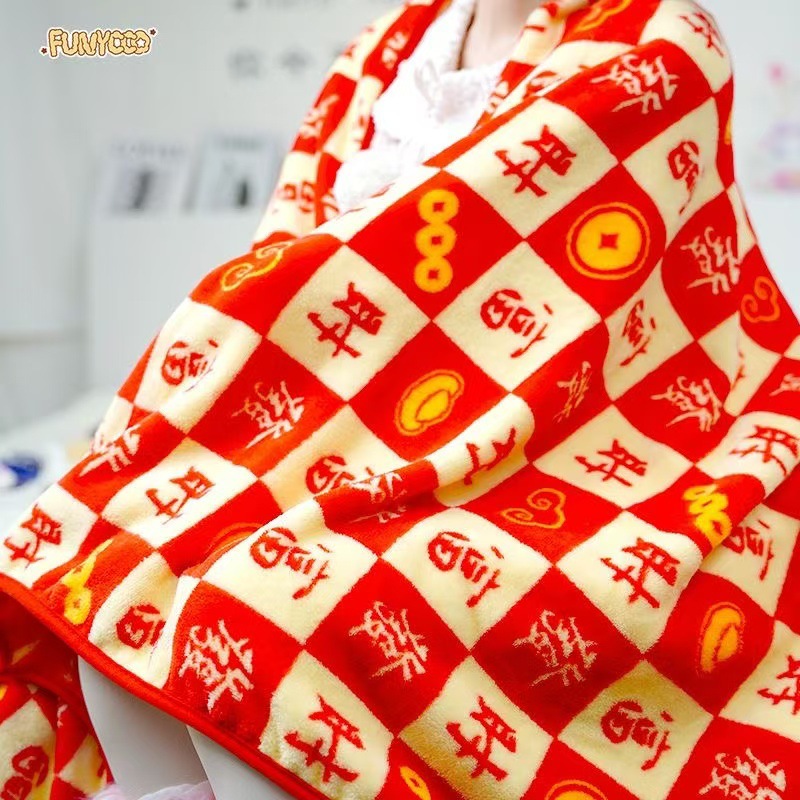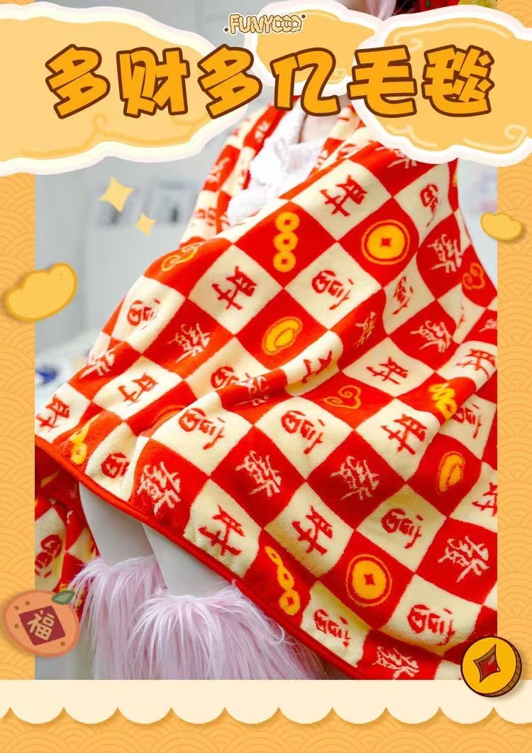 부자 다산 다억 부유신 중국풍 담요 망토 생일 설날 선물 낮잠 담요 숄