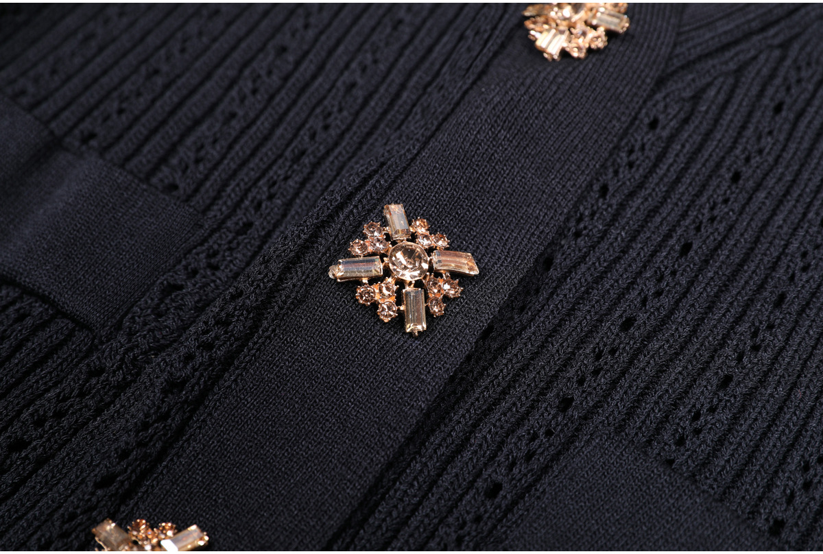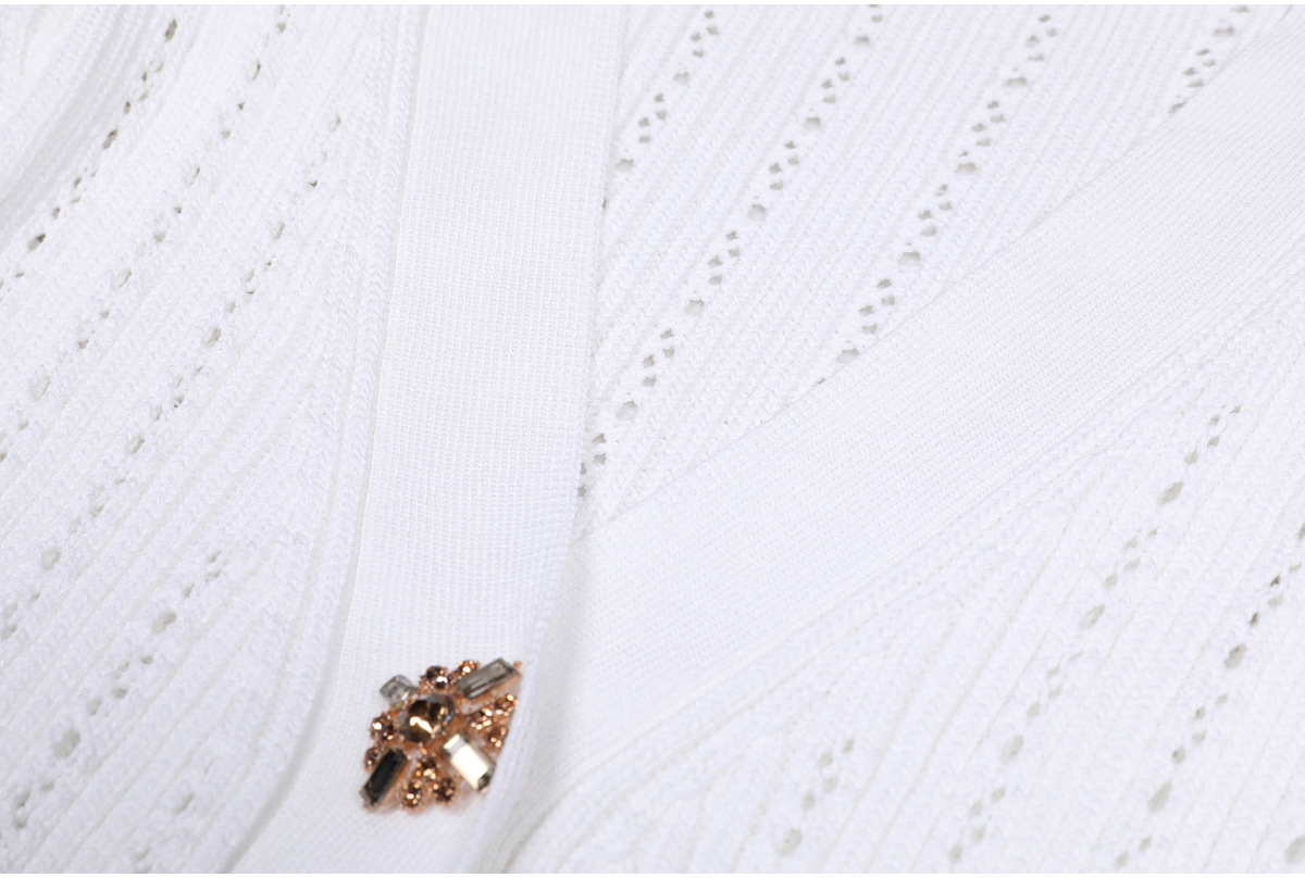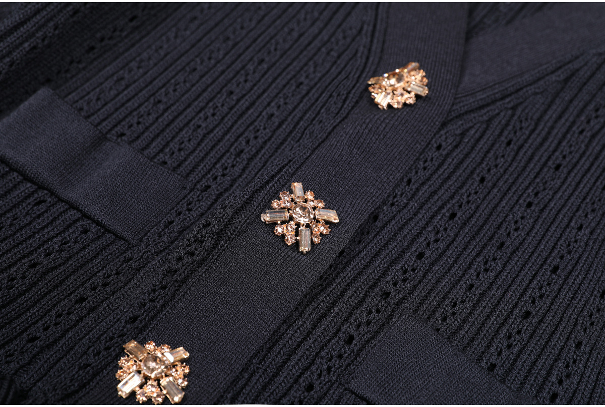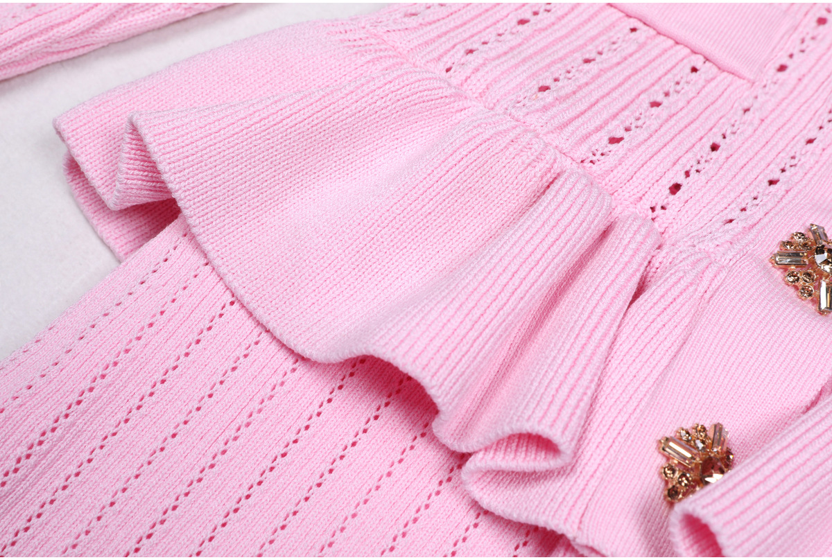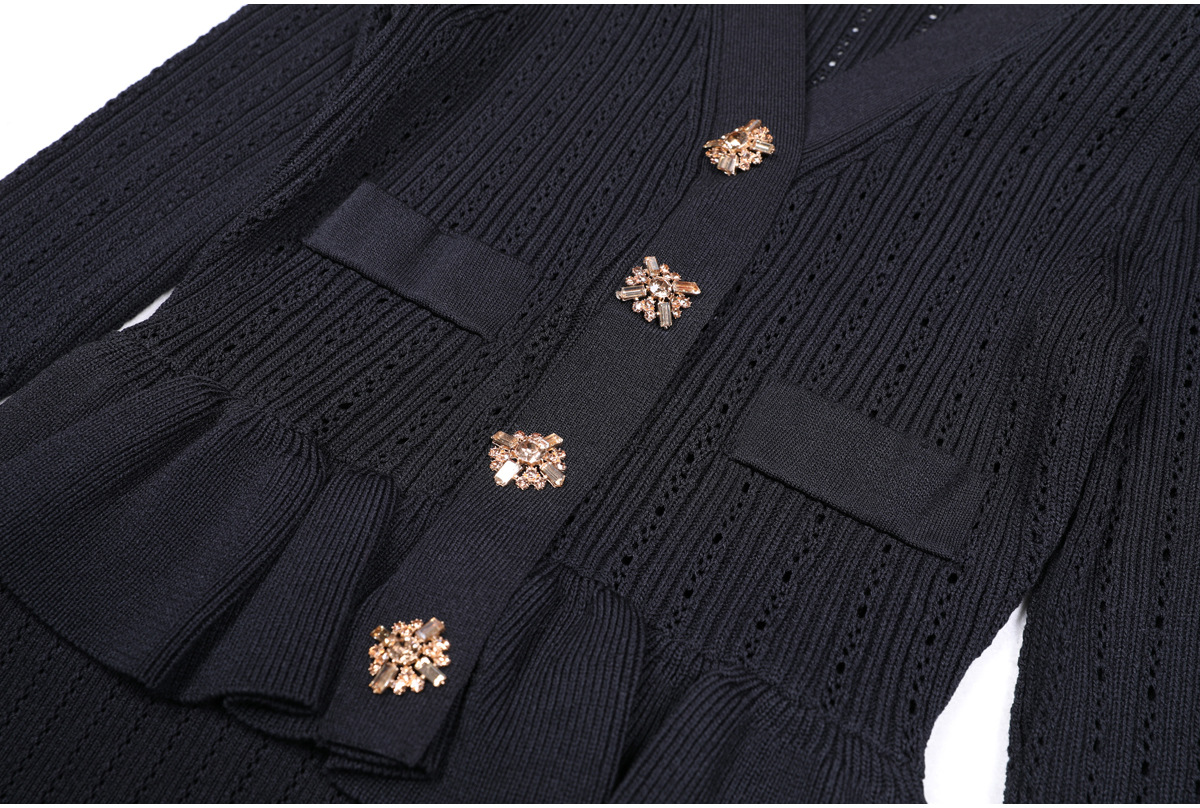 하이 퀄리티 재고 2025 유럽과 미국의 봄과 가을 새로운 패션 니트 V-Neck 슬림핏 슬리밍 긴팔 원피스 여성