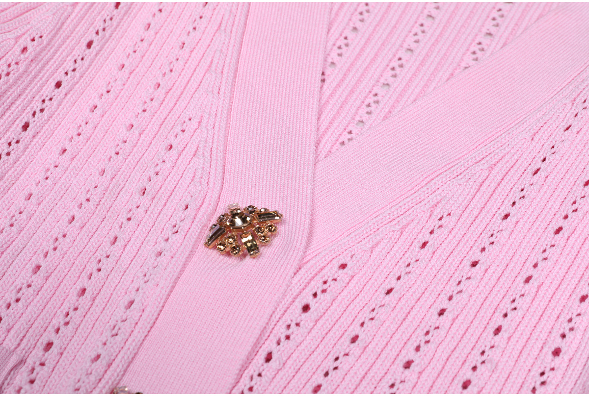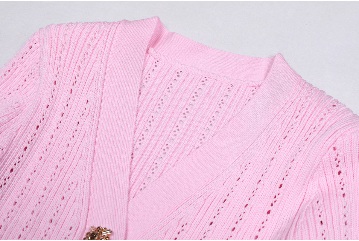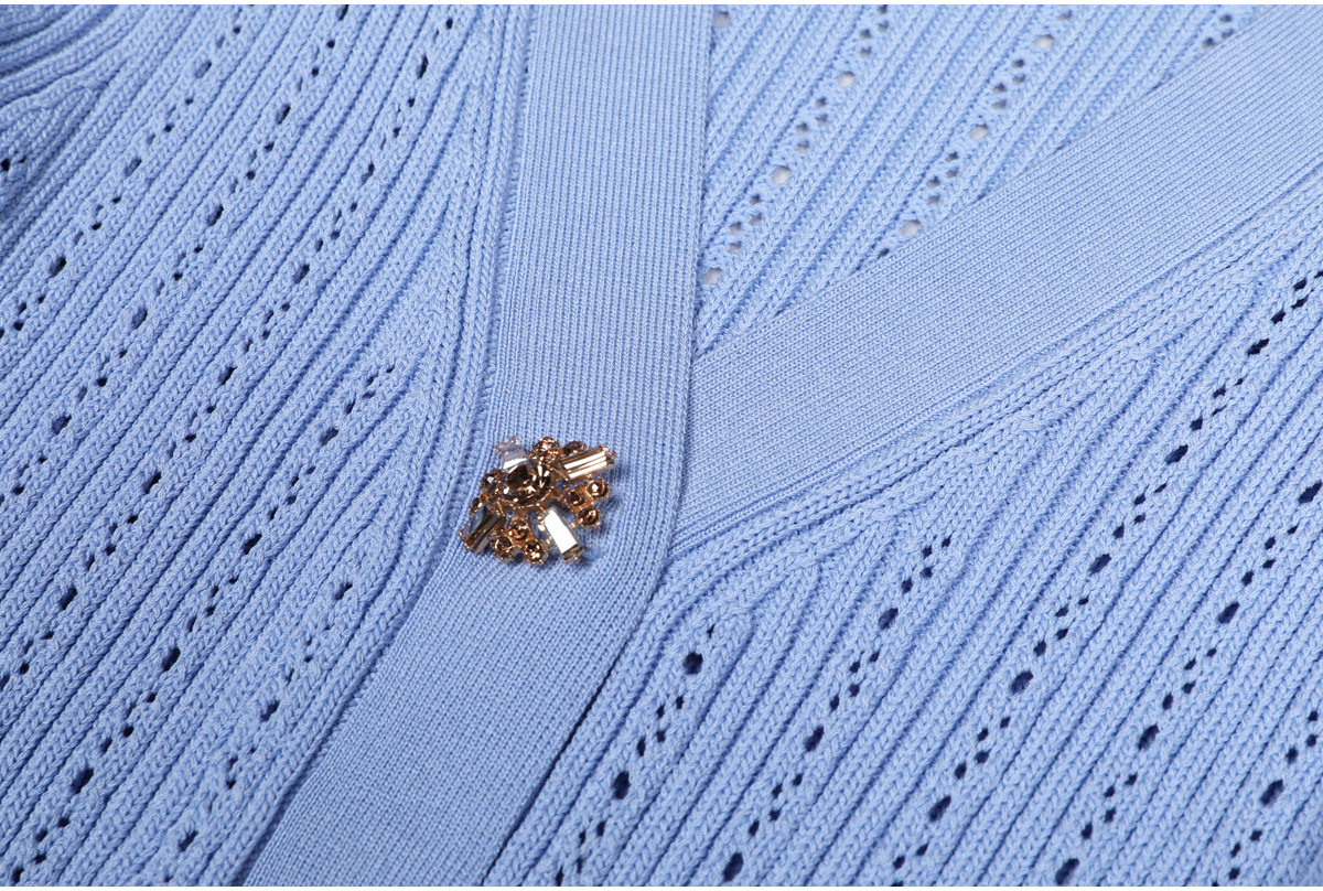 하이 퀄리티 재고 2025 유럽과 미국의 봄과 가을 새로운 패션 니트 V-Neck 슬림핏 슬리밍 긴팔 원피스 여성스토어 가기