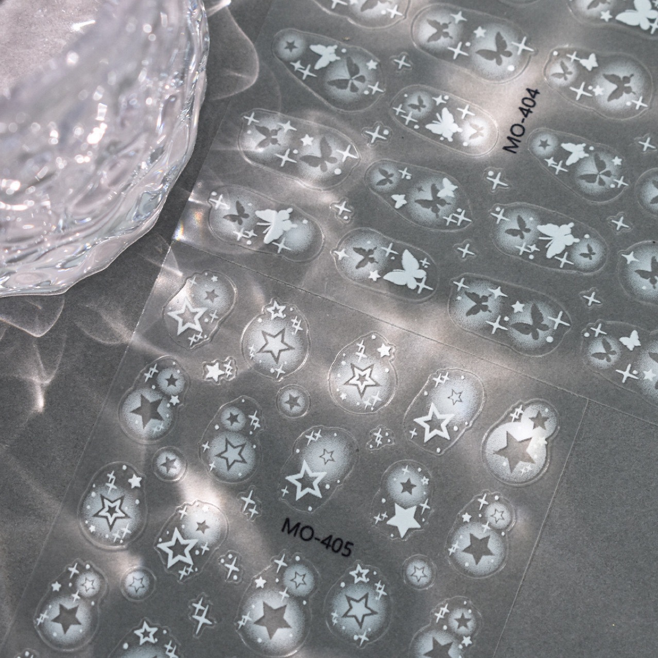 새로운 반 투명 비 스프레이 페인팅 네일 아트 속이 빈 화이트 후광 그물 레드 러브 스타 스타 네일 장식 접착제 꽃스토어 가기