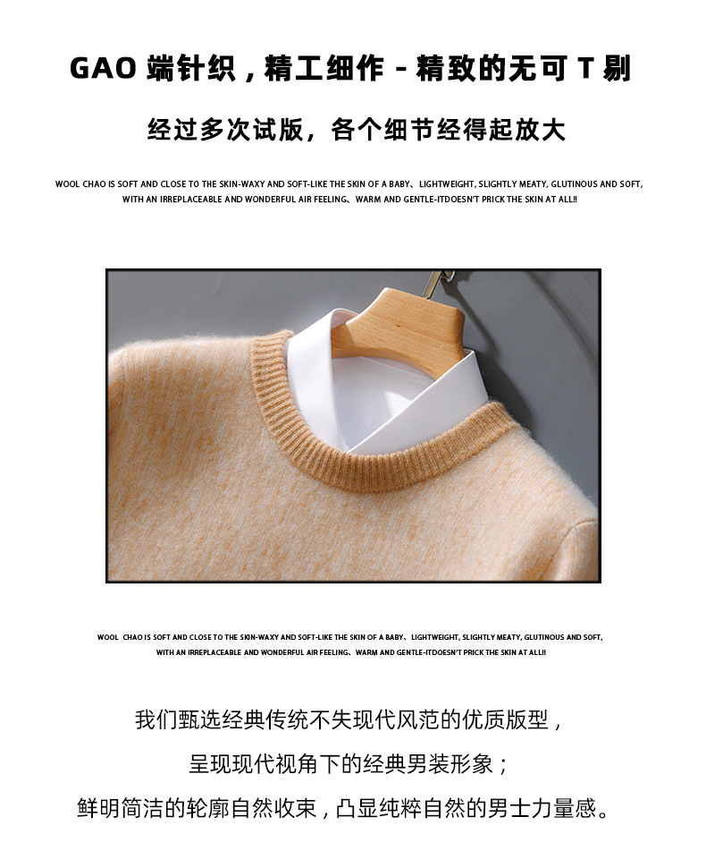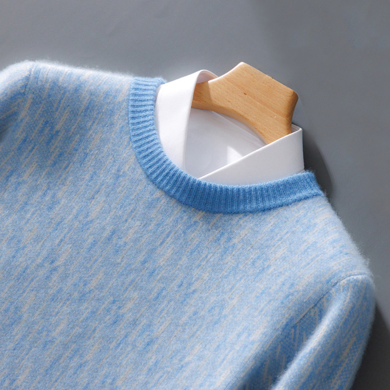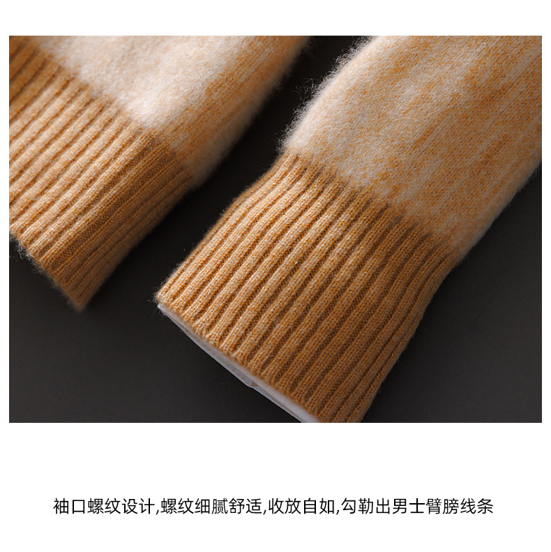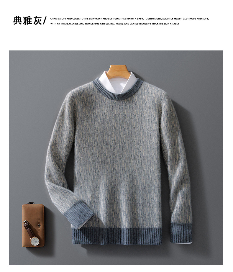 가을과 겨울 2024 새로운 남성 순수 양모 크루 넥 스웨터 두꺼운 비즈니스 캐주얼 컬러 블록 울 스웨터 탑스토어 가기