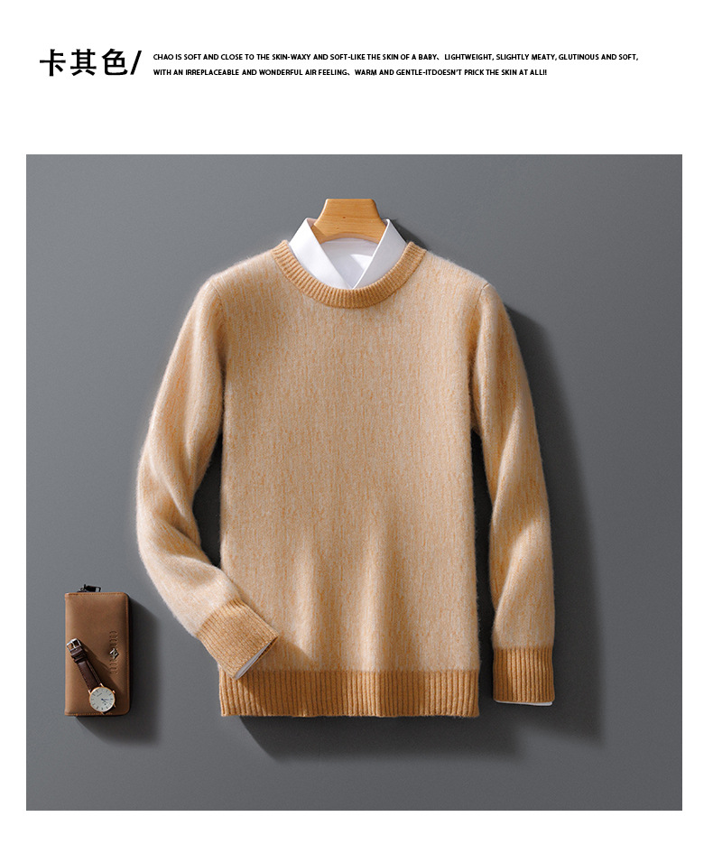 가을과 겨울 2024 새로운 남성 순수 양모 크루 넥 스웨터 두꺼운 비즈니스 캐주얼 컬러 블록 울 스웨터 탑