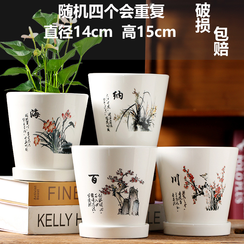 사이버 축하 꽃 냄비 세라믹 클리어런스 대형 중형 가정용 녹색 Dendrochia 다육 식물 흰색 호접란 분지 도매