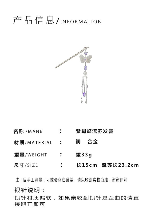 새로운 중국 헤드웨어 퍼플 나비 술 헤어핀 내셔널 스타일 스텝 쉐이크 헤어핀 헤드 플레이트 헤어 핀 한푸 청삼 액세서리스토어 가기