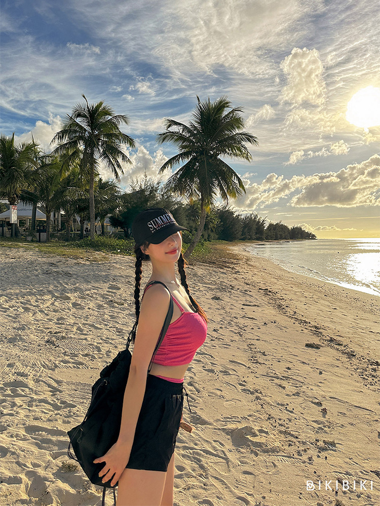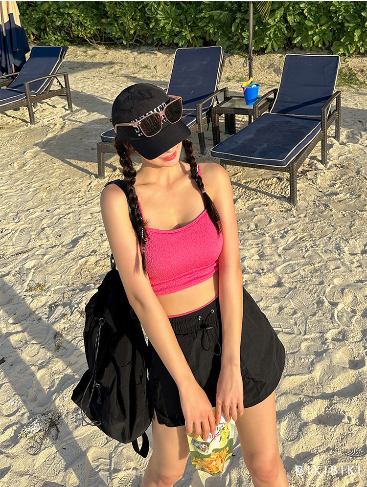 달콤하고 매운 캐미솔 여성의 여름 수영복 아름다운 등 짧은 로즈 레드 도파민 스트랩 비키니의 공장 직접 한국어 버전스토어 가기
