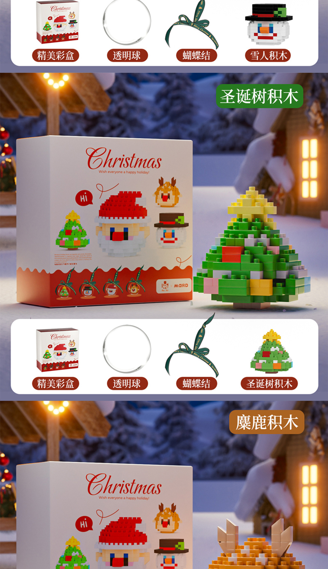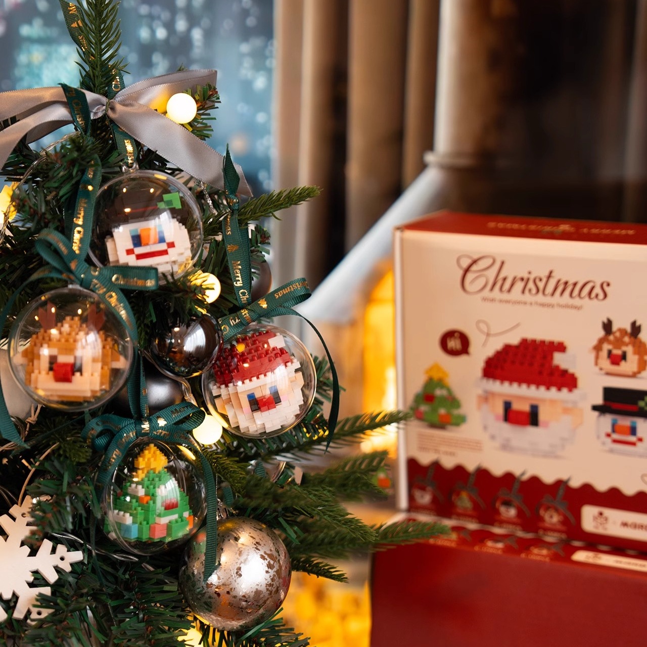 투명한 공 크리스마스 작은 선물 산타 클로스 크리스마스 트리 펜던트 장식 조립 된 건물 블록 장난감 6108 국경