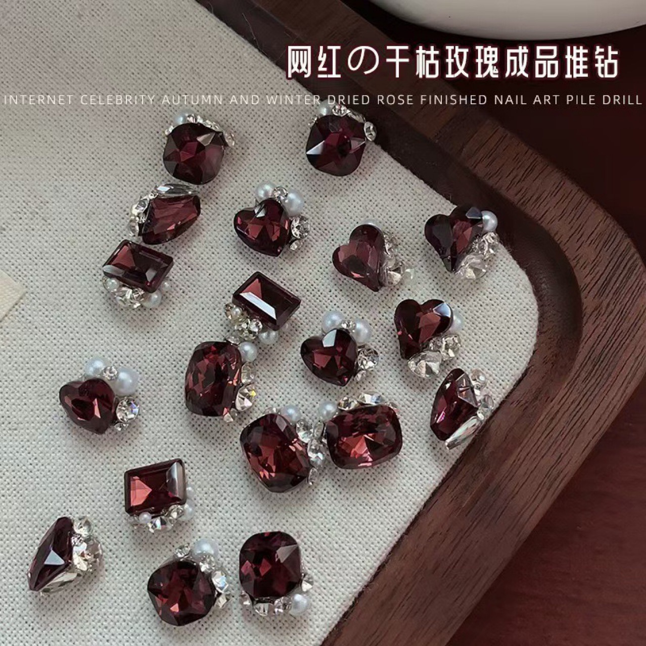 새로운 네일 아트 드라이 로즈 완성 된 다이아몬드 쥬얼리 가을과 겨울 인터넷 축하 플래시 사랑 지방 설탕 네일 장식 드릴스토어 가기