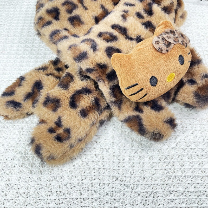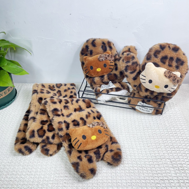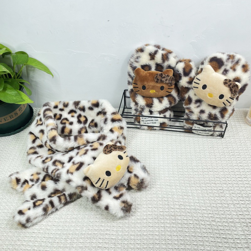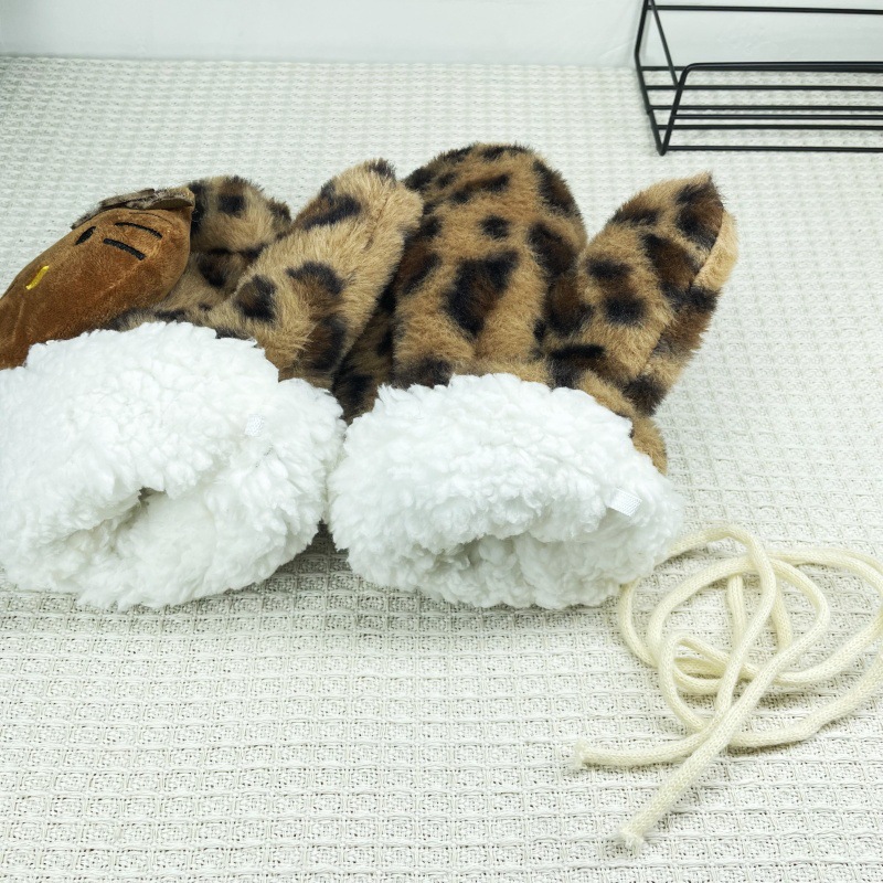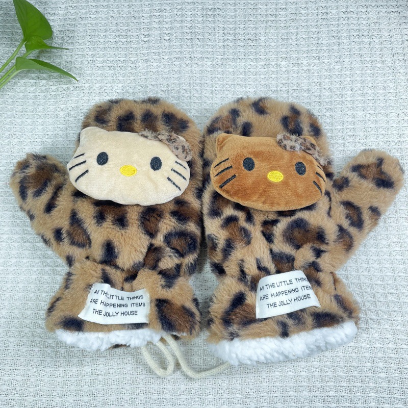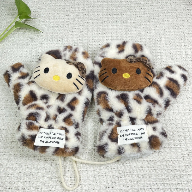 2024 새로운 레오파드 무늬 고양이 장갑 여성용 겨울 봉제 목 풀 핑거 장갑 방풍 두꺼운 따뜻한 목스토어 가기
