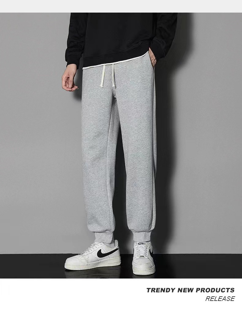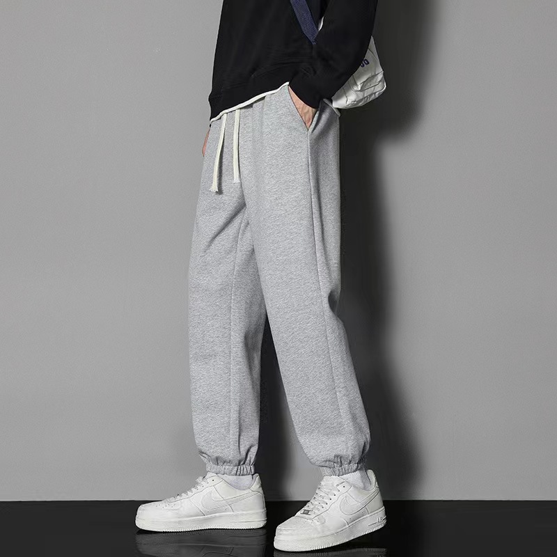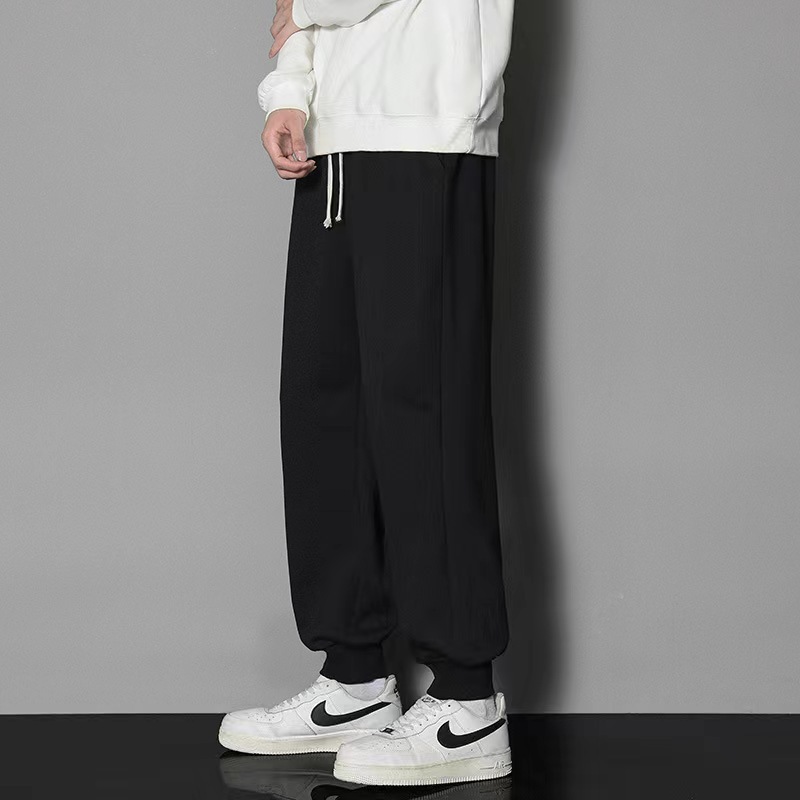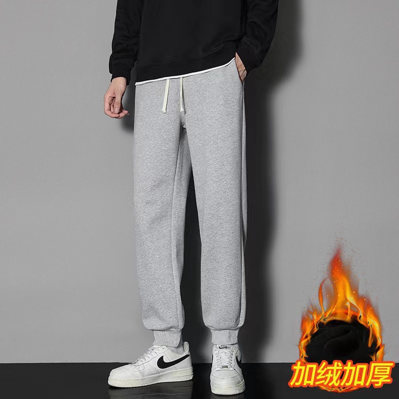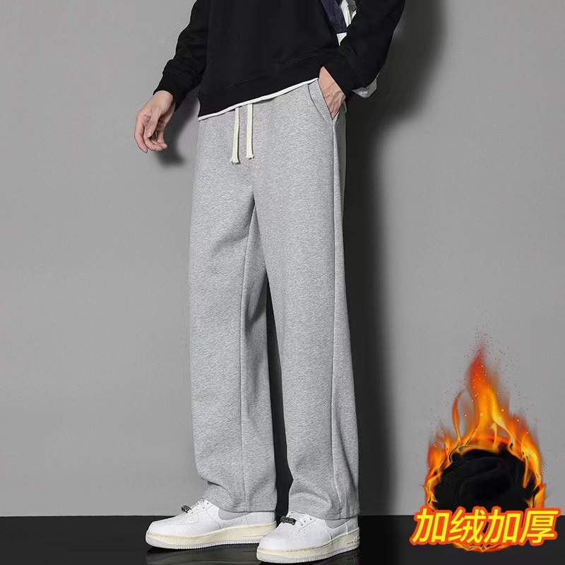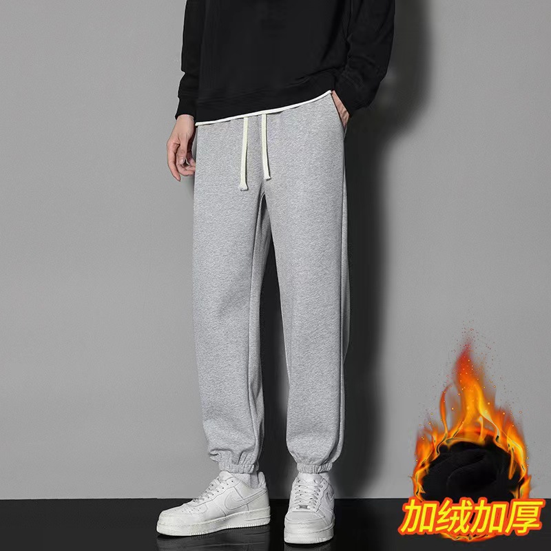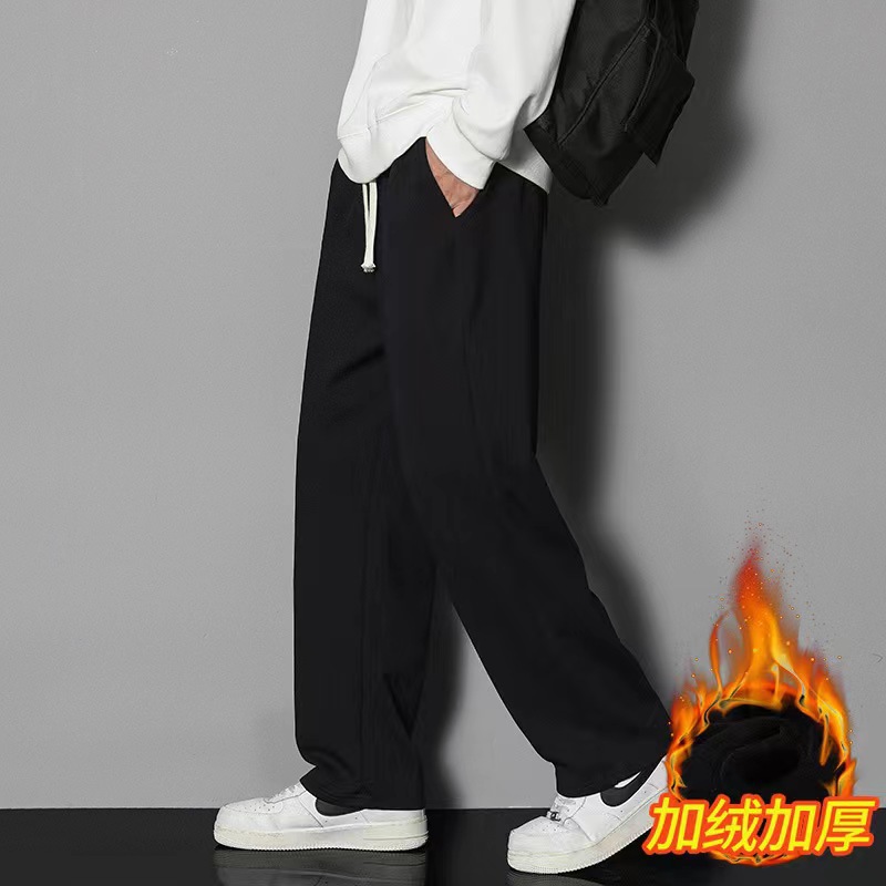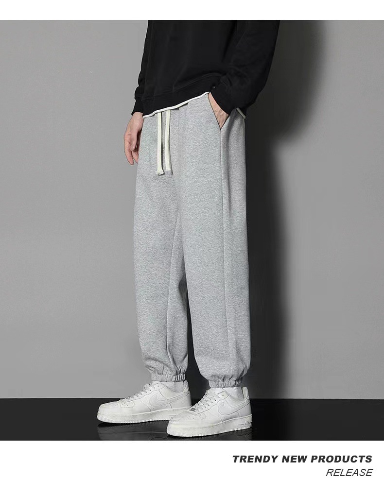 2024 년 자른 바지 가을과 겨울 트렌디 한 느슨한 단색 남자 캐주얼 바지 스포츠 바지 플러스 사이즈 바지 기모 인 홍콩 스타일스토어 가기