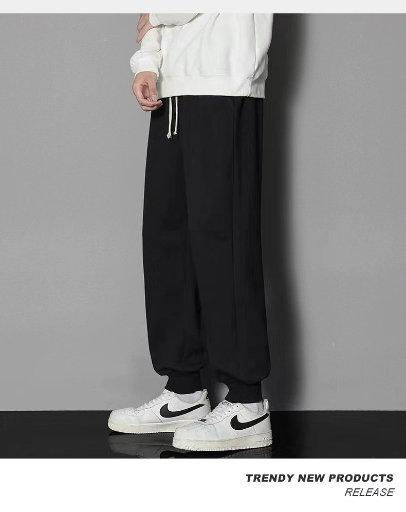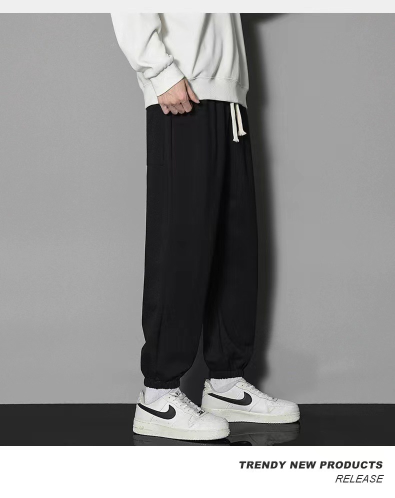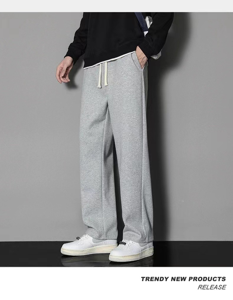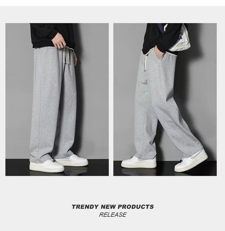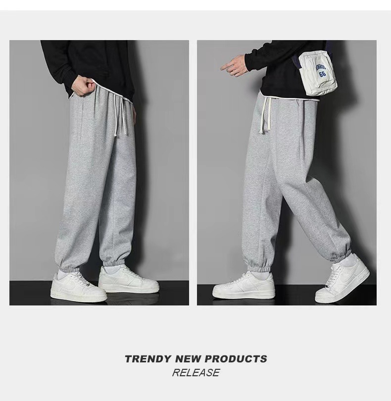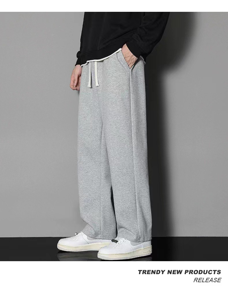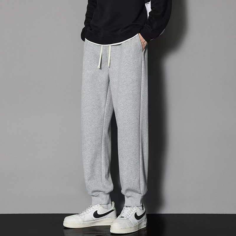 2024 년 자른 바지 가을과 겨울 트렌디 한 느슨한 단색 남자 캐주얼 바지 스포츠 바지 플러스 사이즈 바지 기모 인 홍콩 스타일스토어 가기