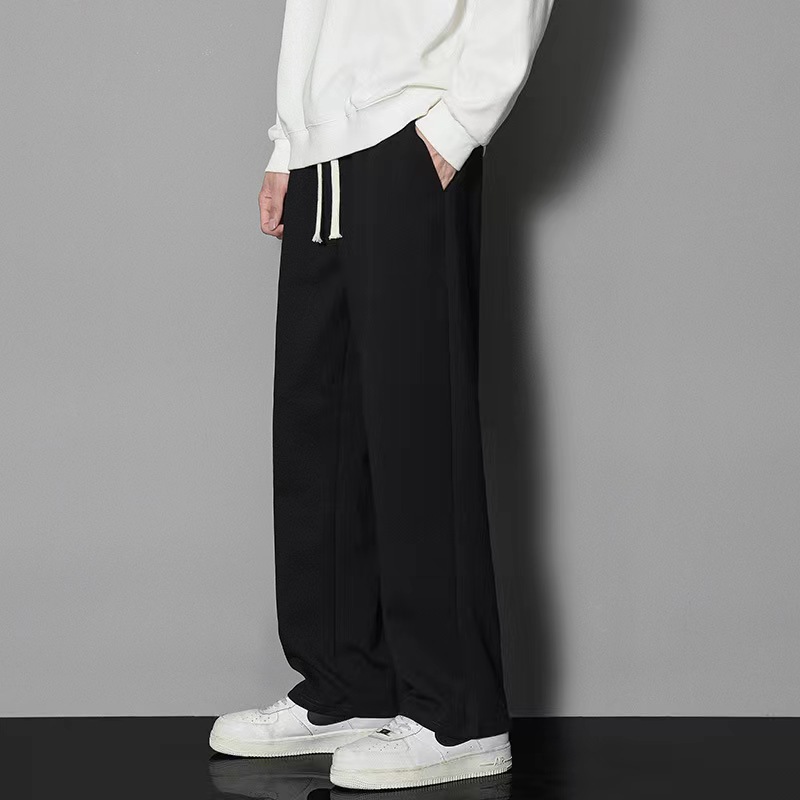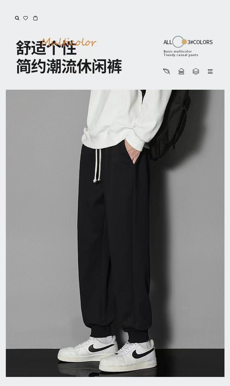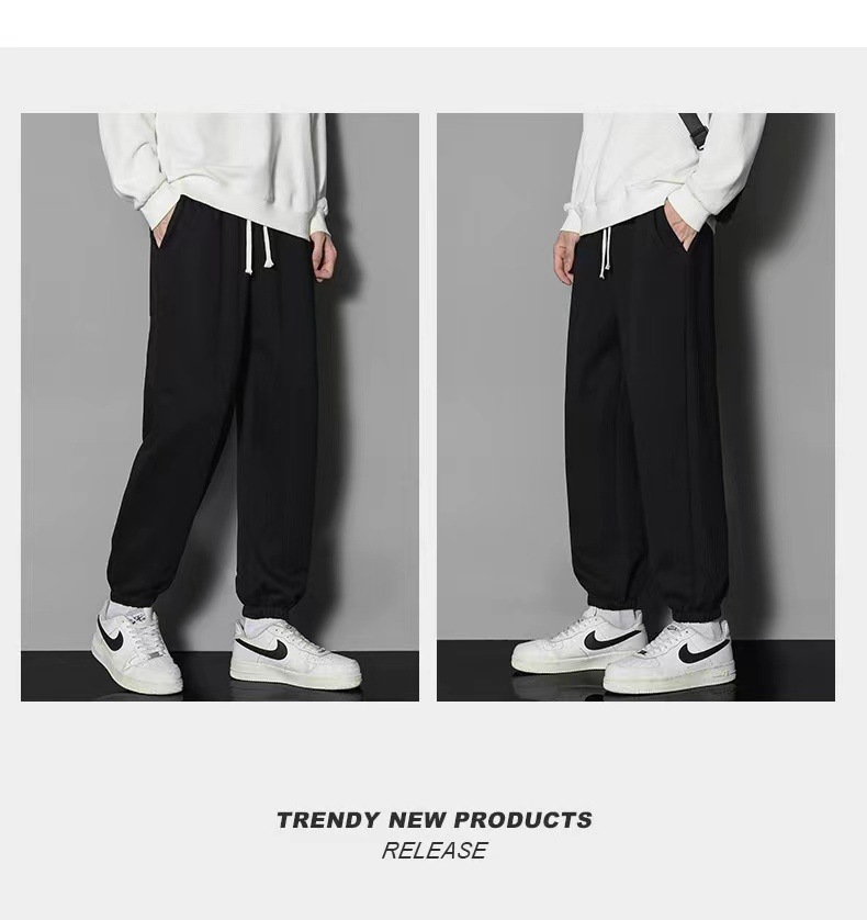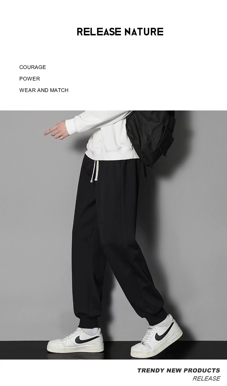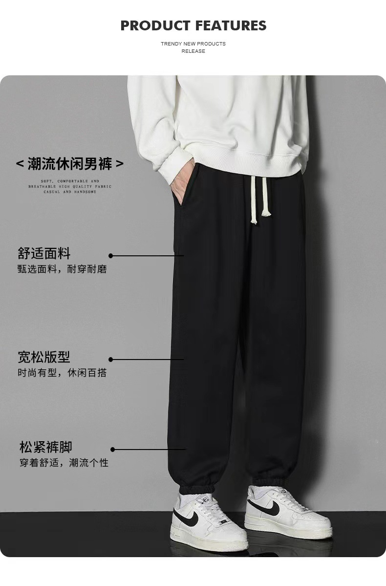 2024 년 자른 바지 가을과 겨울 트렌디 한 느슨한 단색 남자 캐주얼 바지 스포츠 바지 플러스 사이즈 바지 기모 인 홍콩 스타일스토어 가기