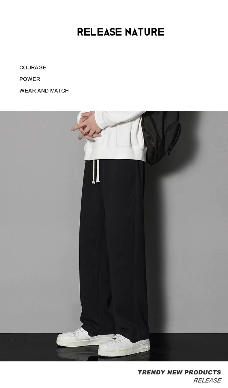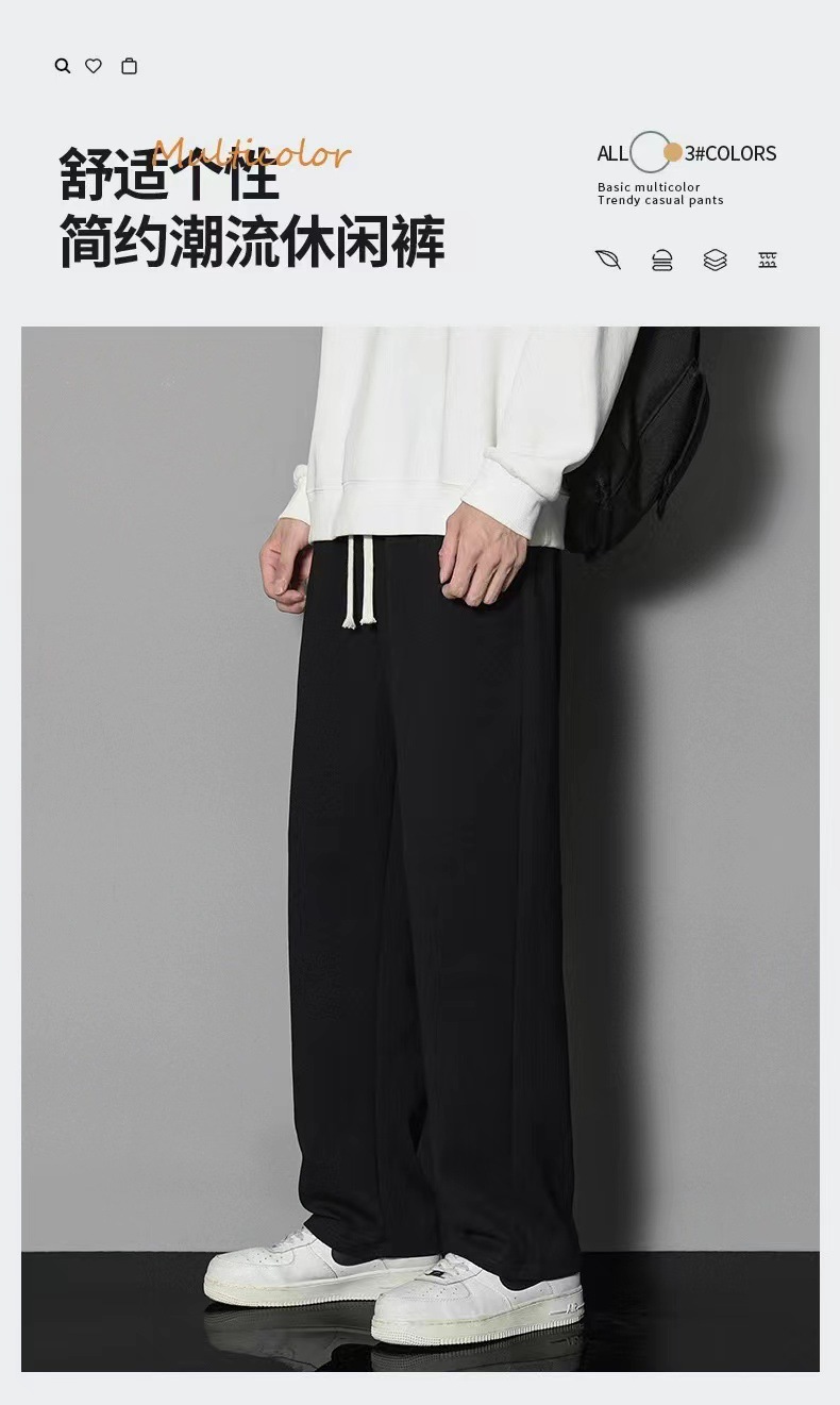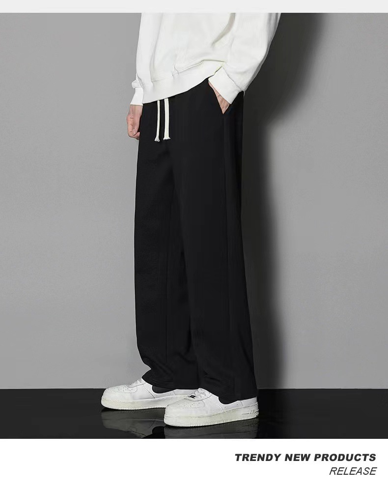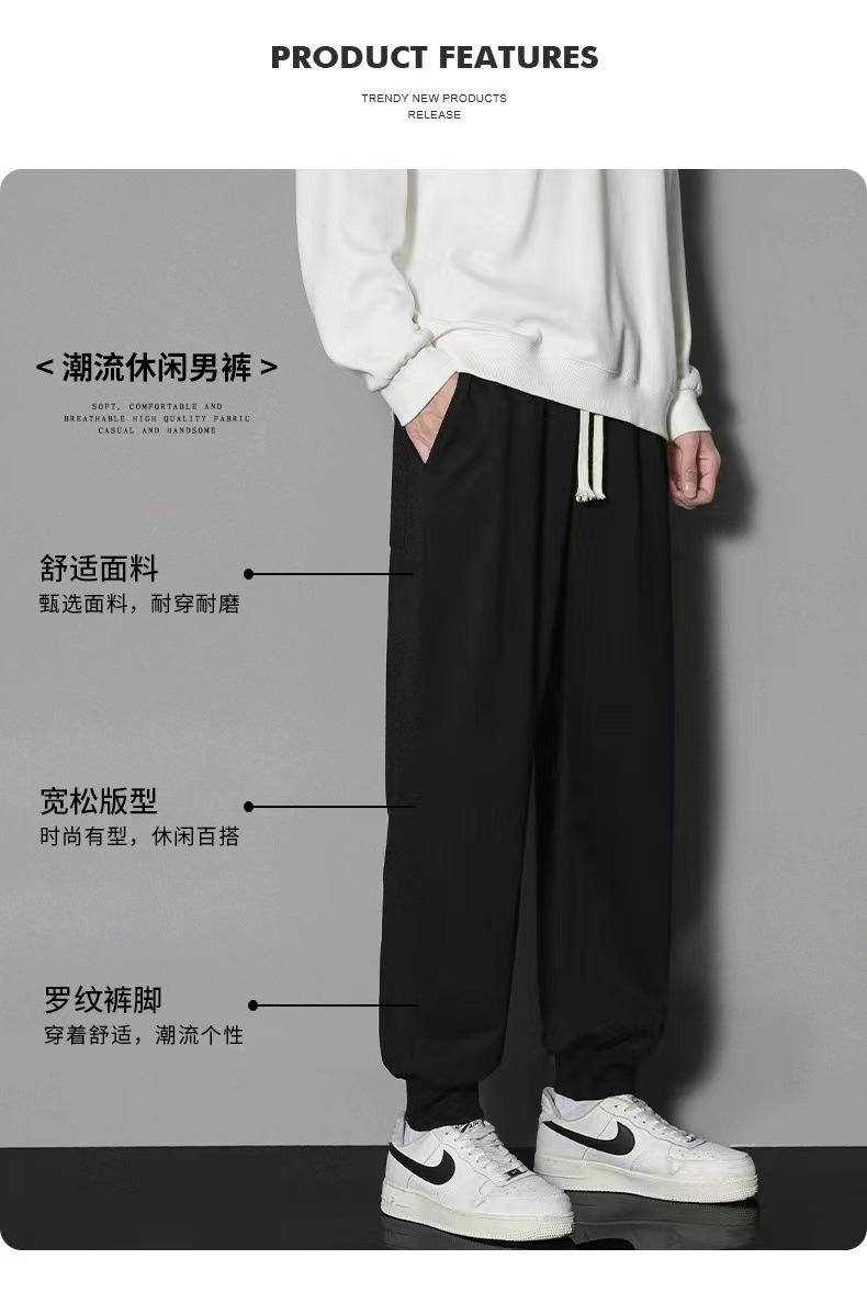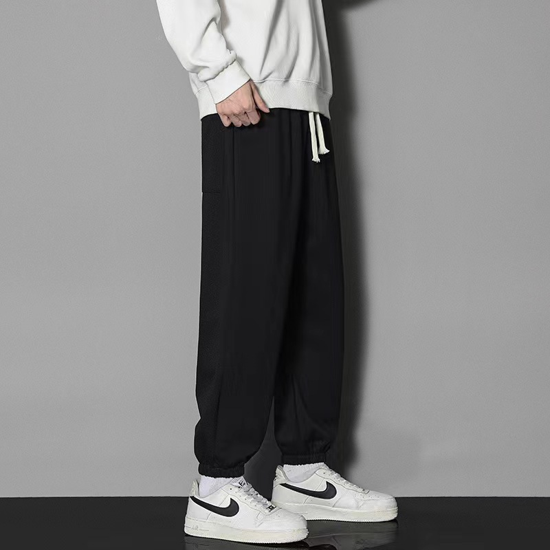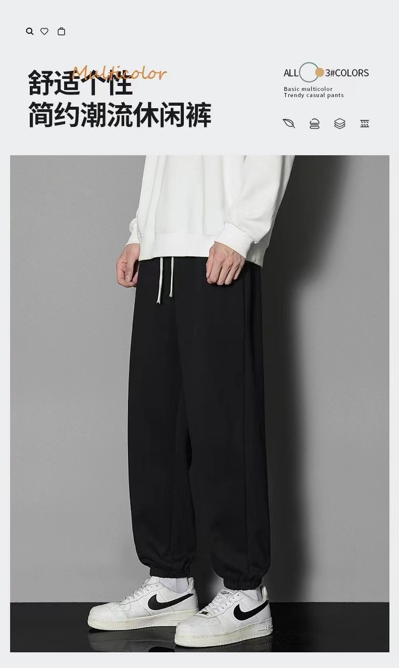 2024 년 자른 바지 가을과 겨울 트렌디 한 느슨한 단색 남자 캐주얼 바지 스포츠 바지 플러스 사이즈 바지 기모 인 홍콩 스타일스토어 가기