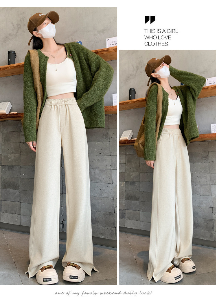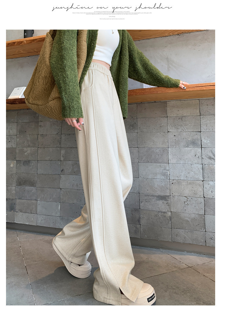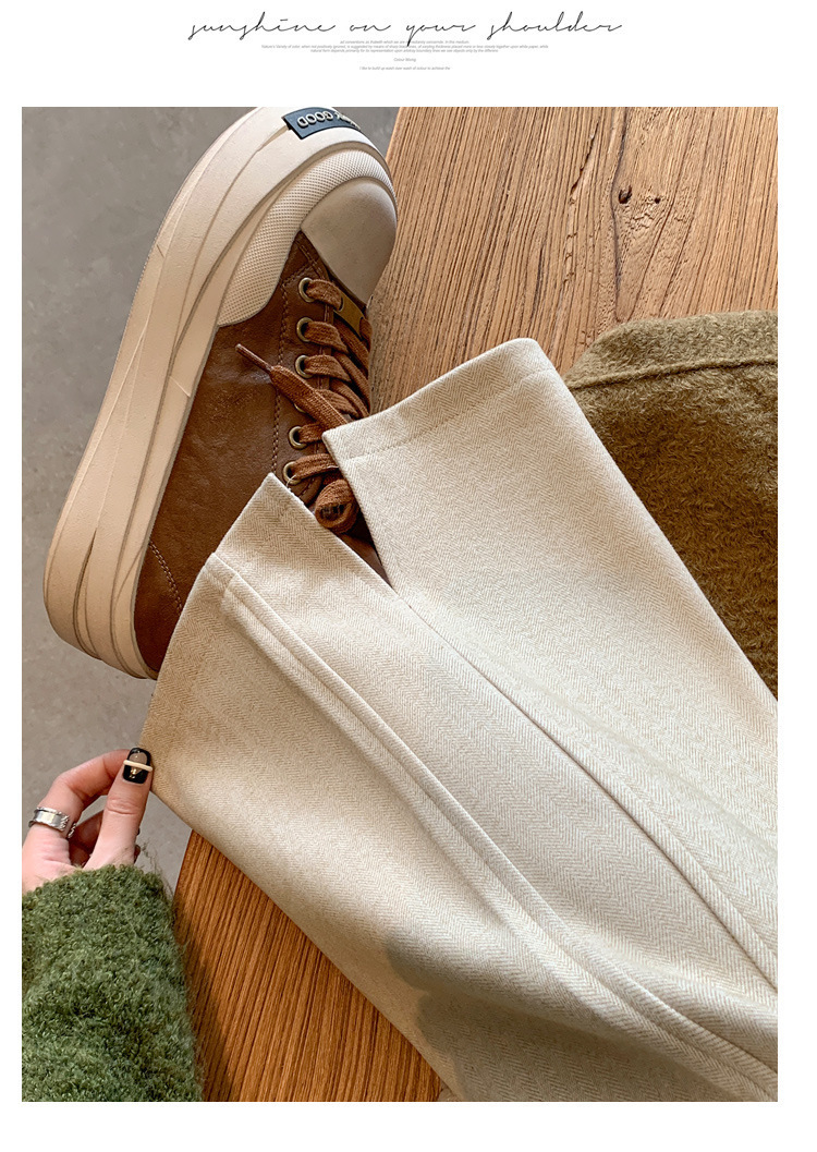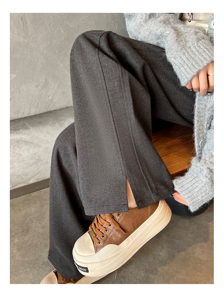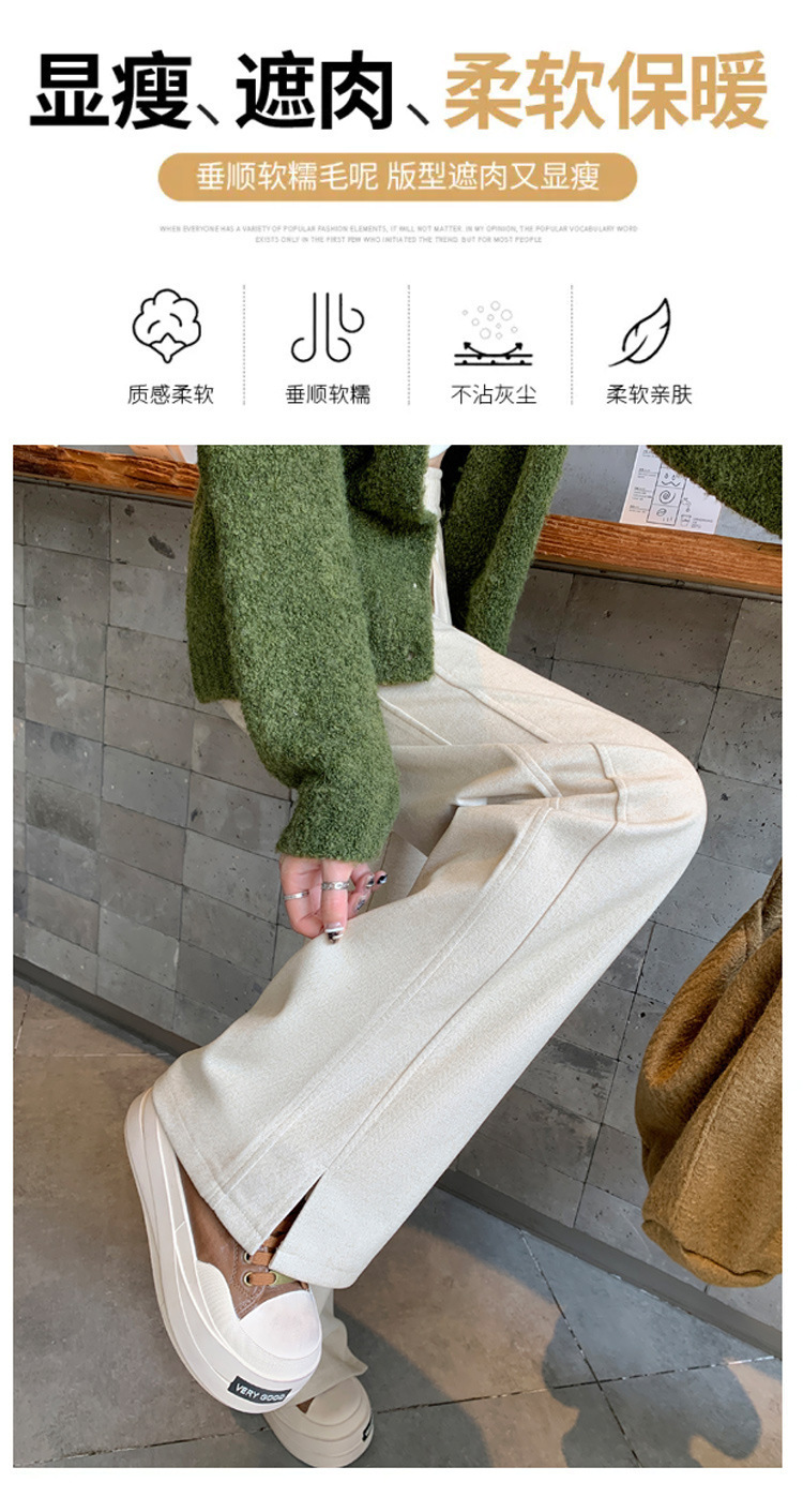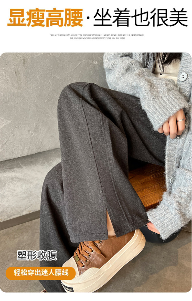 헤링본 패턴 기모 울 넓은 다리 바지 여성의 가을과 겨울 2024 새로운 높은 허리 슬리밍 좁은 스트레이트 튜브 스플릿 캐주얼 바지스토어 가기