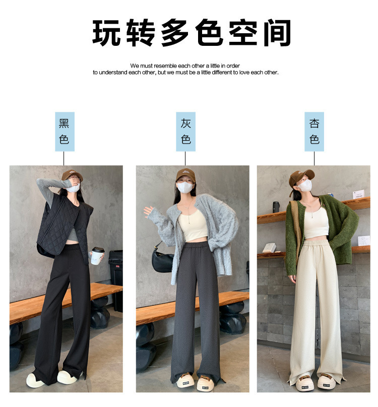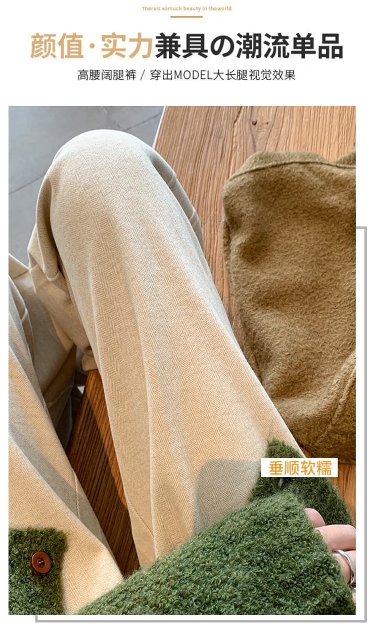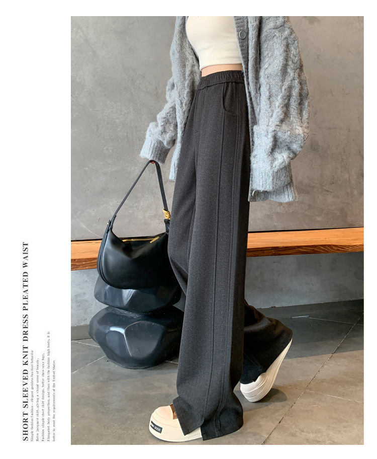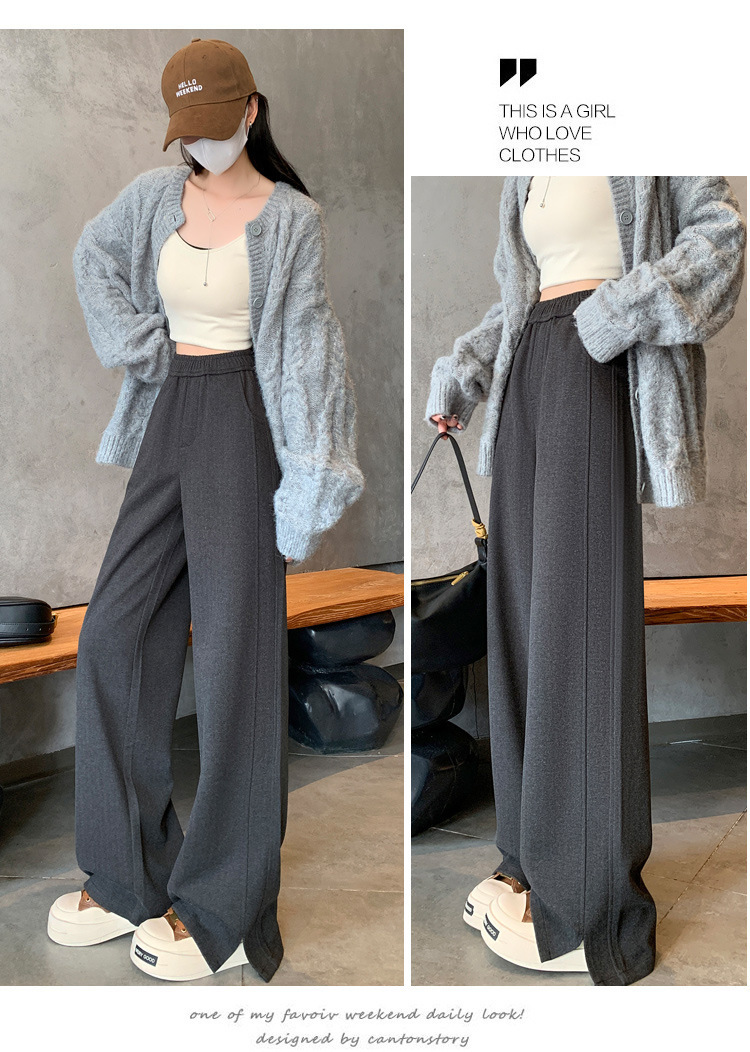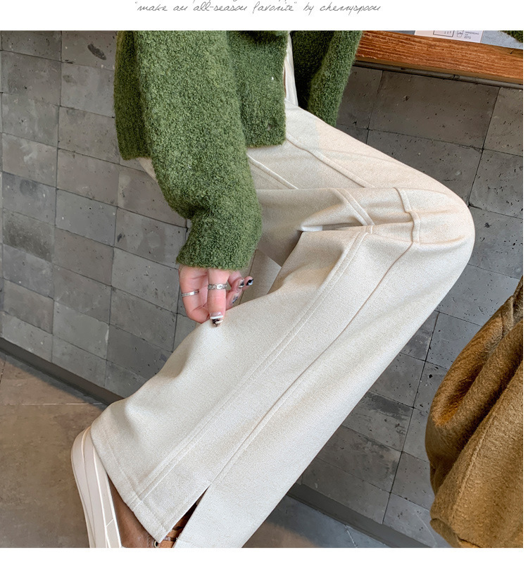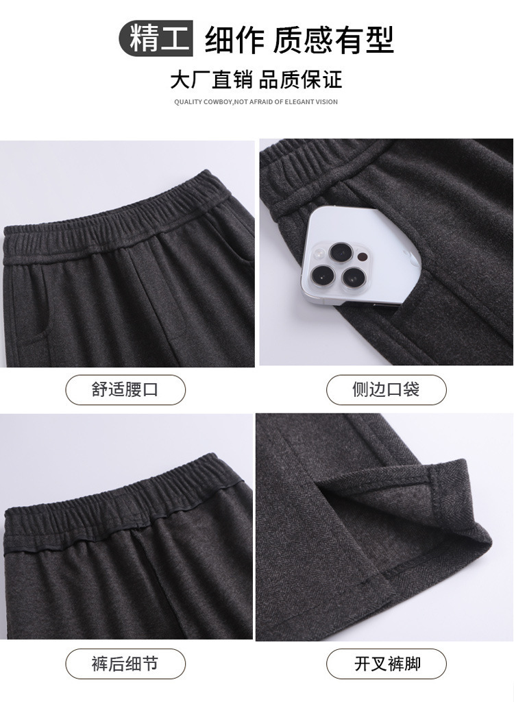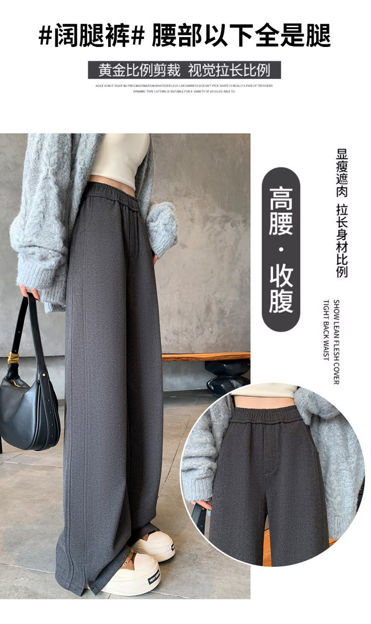 헤링본 패턴 기모 울 넓은 다리 바지 여성의 가을과 겨울 2024 새로운 높은 허리 슬리밍 좁은 스트레이트 튜브 스플릿 캐주얼 바지스토어 가기