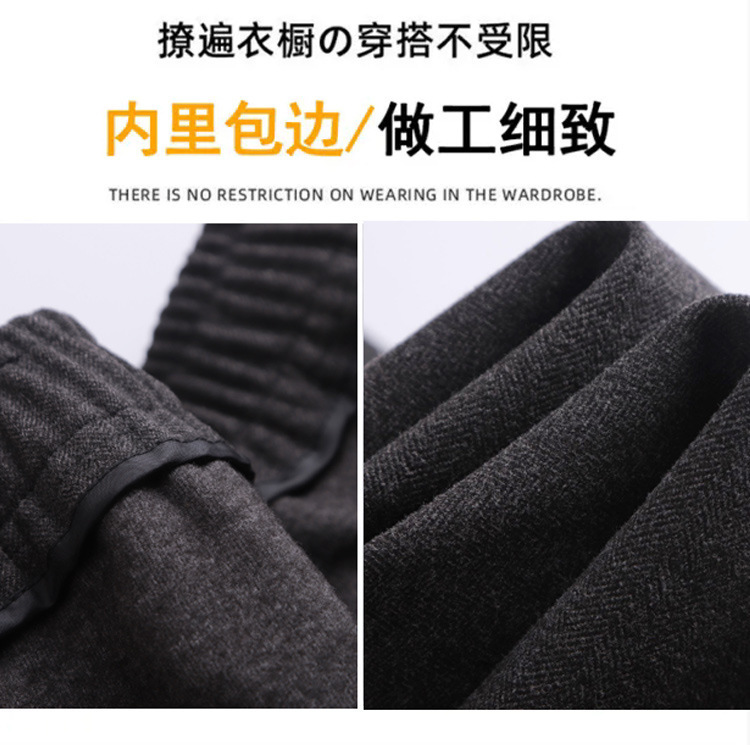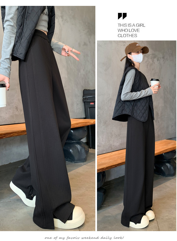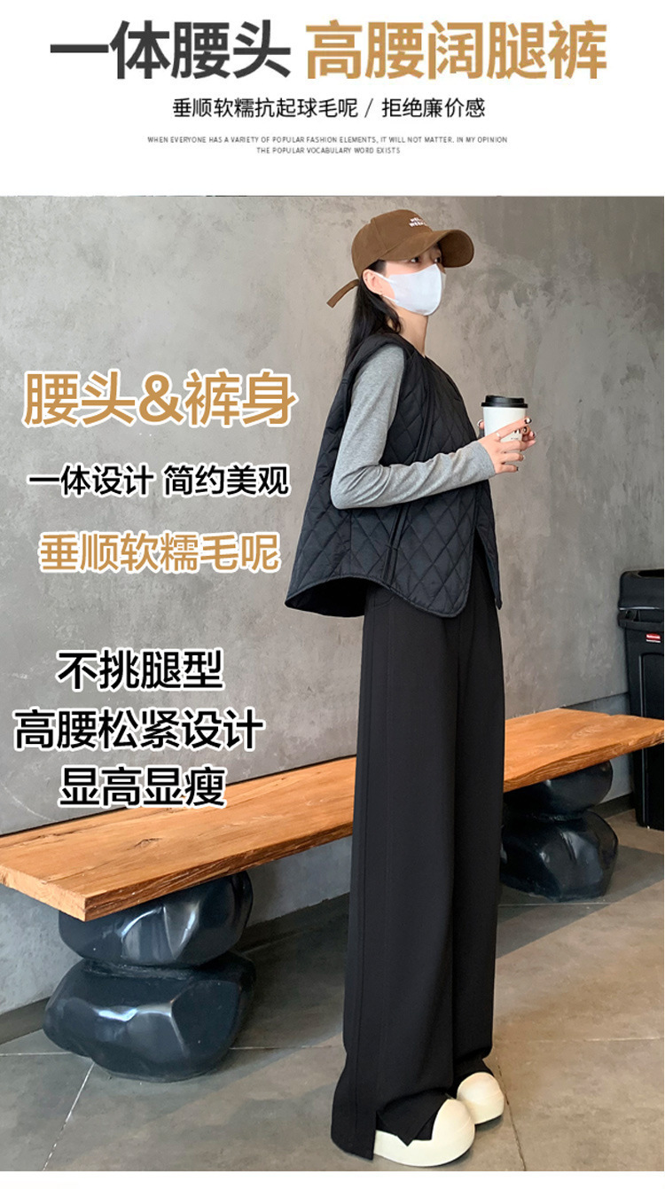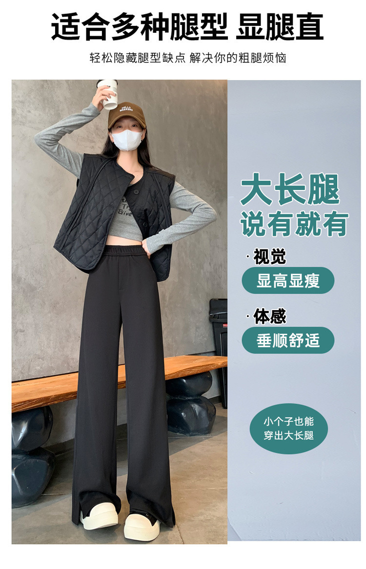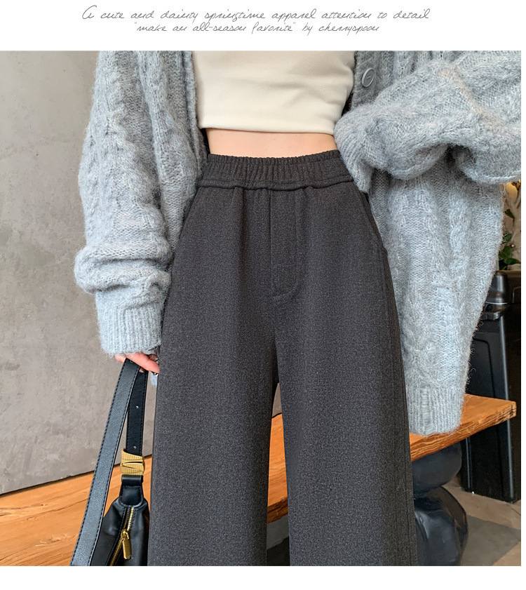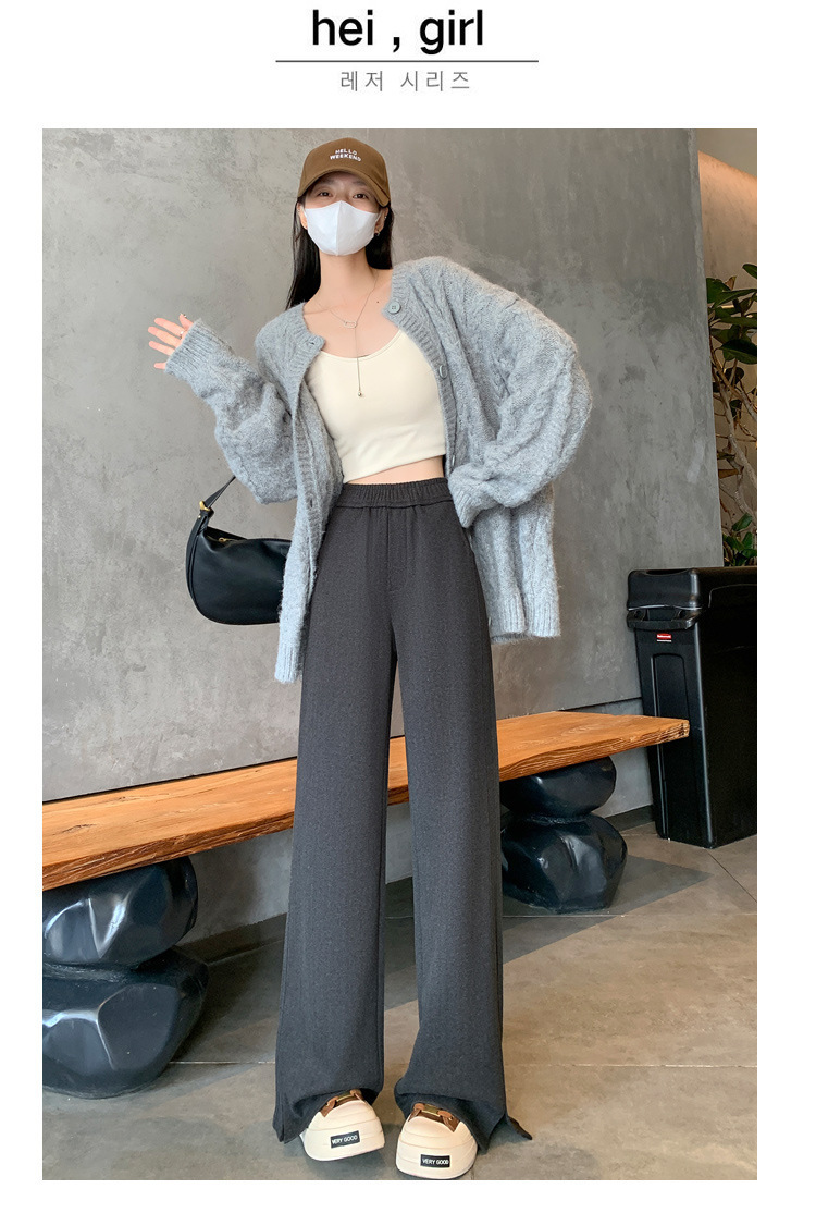 헤링본 패턴 기모 울 넓은 다리 바지 여성의 가을과 겨울 2024 새로운 높은 허리 슬리밍 좁은 스트레이트 튜브 스플릿 캐주얼 바지스토어 가기