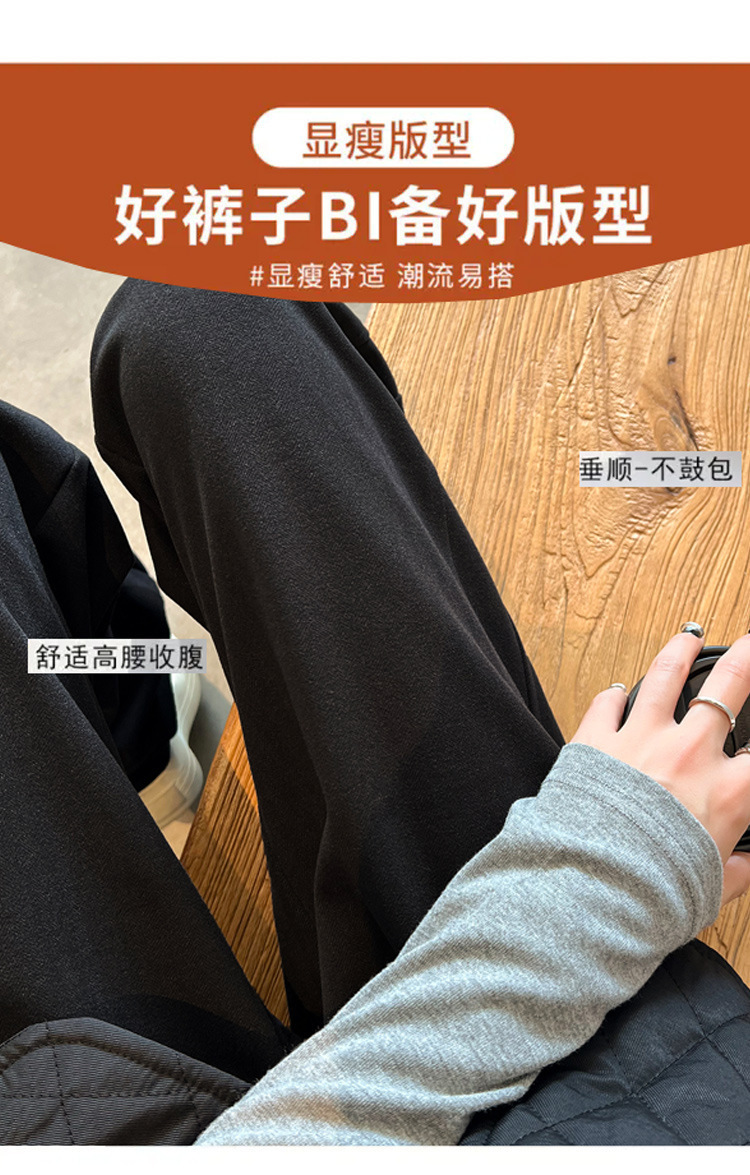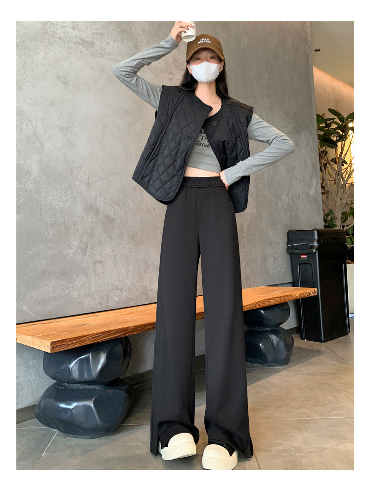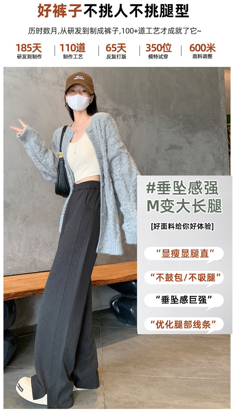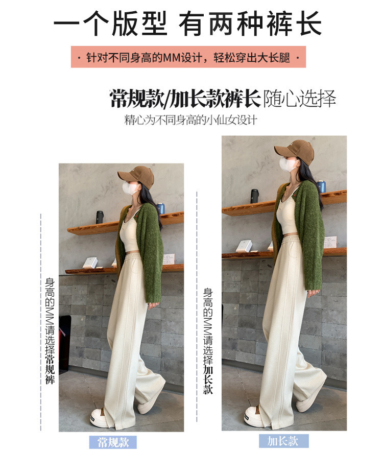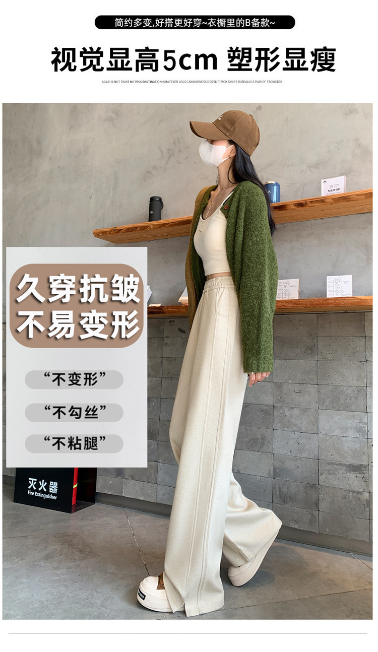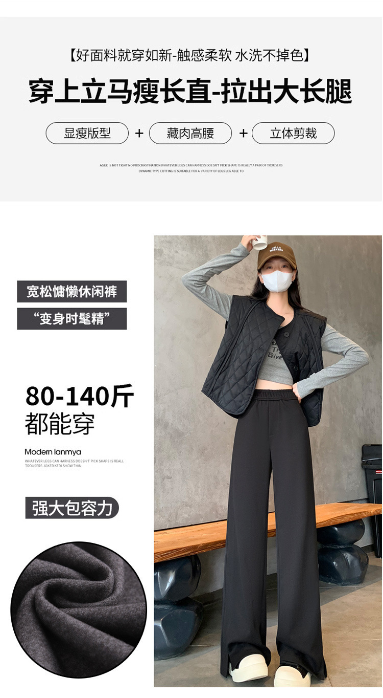 헤링본 패턴 기모 울 넓은 다리 바지 여성의 가을과 겨울 2024 새로운 높은 허리 슬리밍 좁은 스트레이트 튜브 스플릿 캐주얼 바지스토어 가기