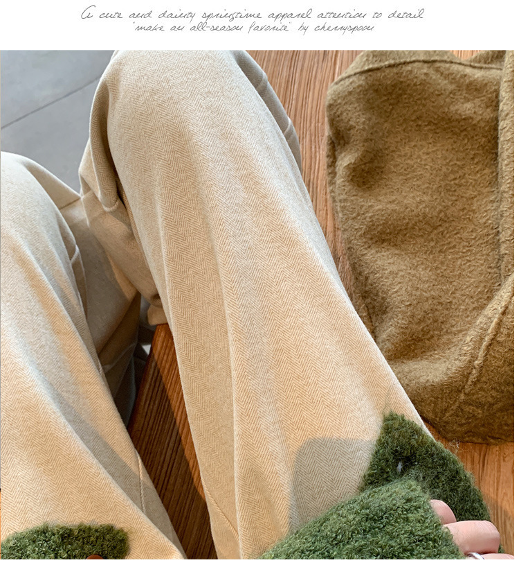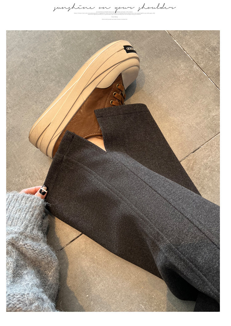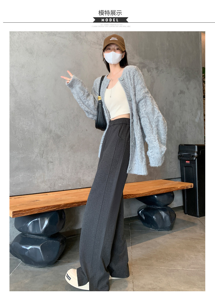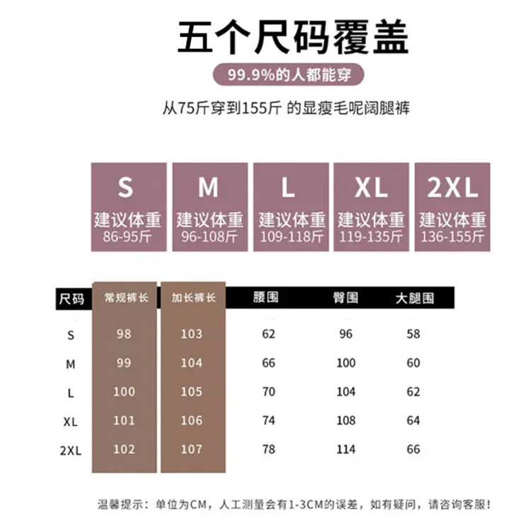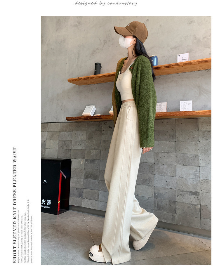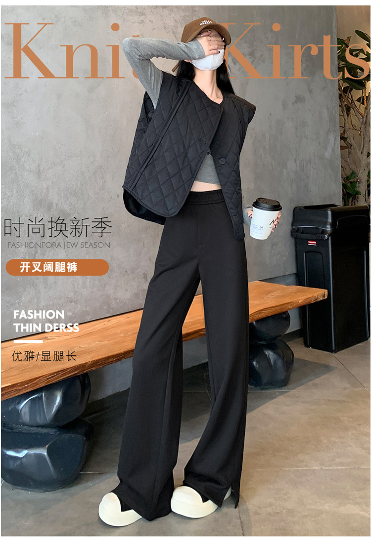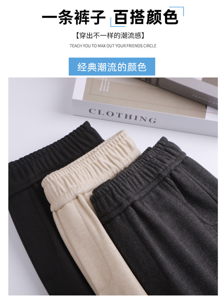 헤링본 패턴 기모 울 넓은 다리 바지 여성의 가을과 겨울 2024 새로운 높은 허리 슬리밍 좁은 스트레이트 튜브 스플릿 캐주얼 바지스토어 가기