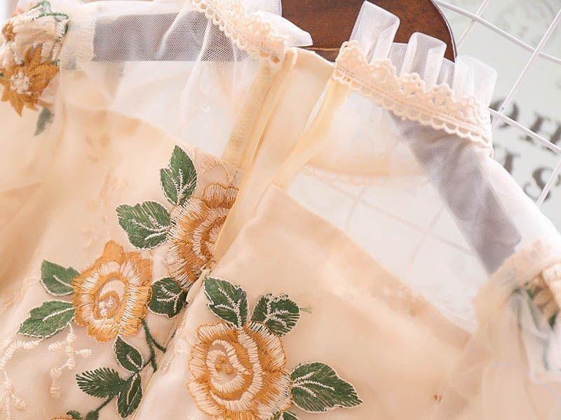 여자 긴팔 원피스 가을 원피스 한국 스타일 꽃 자수 공주 원피스 퍼프 궁전 스타일 서양식 소녀 치마스토어 가기